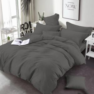 Постільна білизна Темно-сіра однотонна Бязь MERISET - Сімейний на резинці