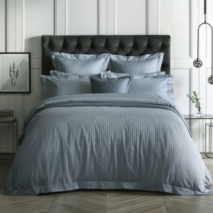 Постільна білизна TRUE GREY Elite Сатин страйп MERISET - Сімейний на резинці