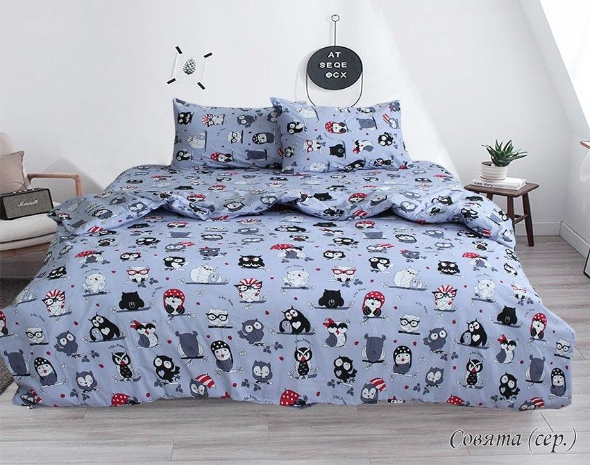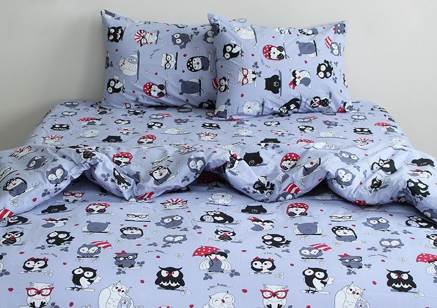 Комплект постільної білизни наволочки 50*70см Ранфорс Совята (серый)