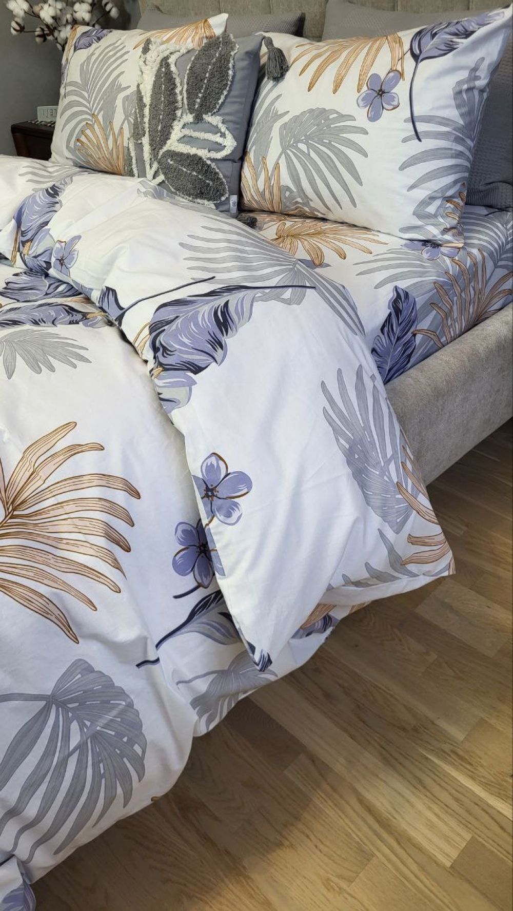 Полуторний: підковдра 145см*215см - 1шт, простирадло 145см*220см - 1 шт, наволочка - 2шт. Двоспальний: підковдра 180см*215см - 1шт, простирадло 200см*220см - 1 шт, наволочка- 2шт. Євро: підковдра 200см*220см - 1шт, простирадло 240см*220см - 1 шт, наволочка - 2шт. Сімейний: підковдра 145см*215см - 2шт, простирадло 240см*220см - 1шт, наволочки - 2шт. Полуторний на резинці: підковдра 145*215 - 1шт, простирадло на резинці 90*200*34 (або вкажіть потрібний розмір в коментарях) -1шт, наволочки - 2шт. Двоспальний на резинці: підковдра 180*215 - 1шт, простирадло на резинці 160*200*34 (або вкажіть потрібний розмір в коментарях) -1шт, наволочки-2шт. Євро на резинці: підковдра 200*220см - 1шт, простирадло на резинці 180*200*34см (або вкажіть потрібний розмір в коментарях) - 1шт, наволочки - 2шт. Сімейний на резинці: підковдра 145*215-2шт, простирадло на резинці 180*200*34 (або вкажіть потрібний розмір в коментарях) -1шт, наволочки - 2шт.
