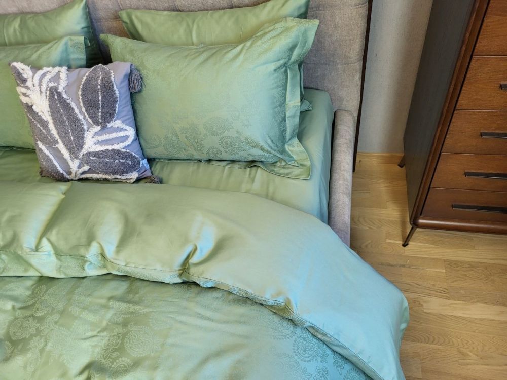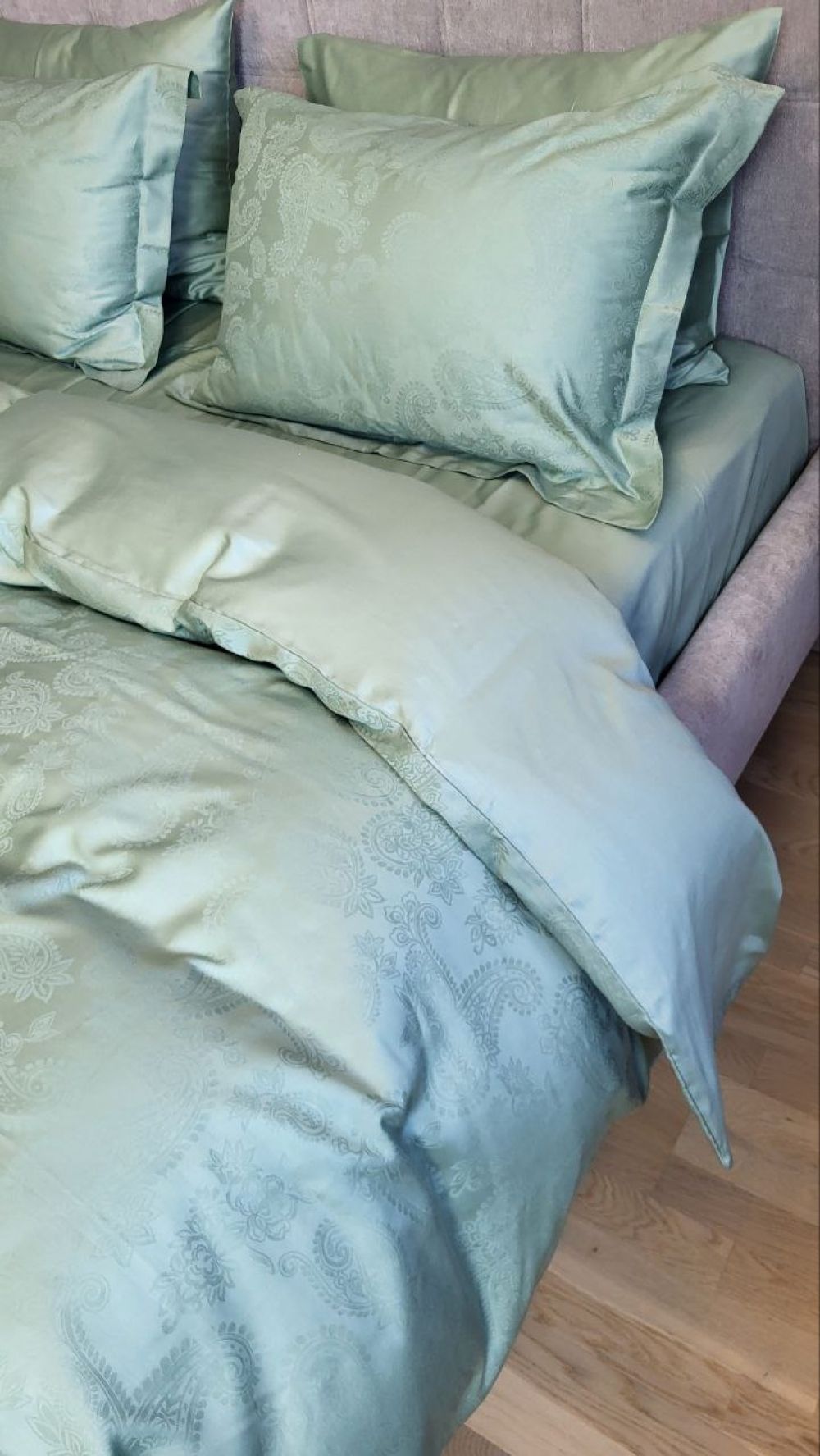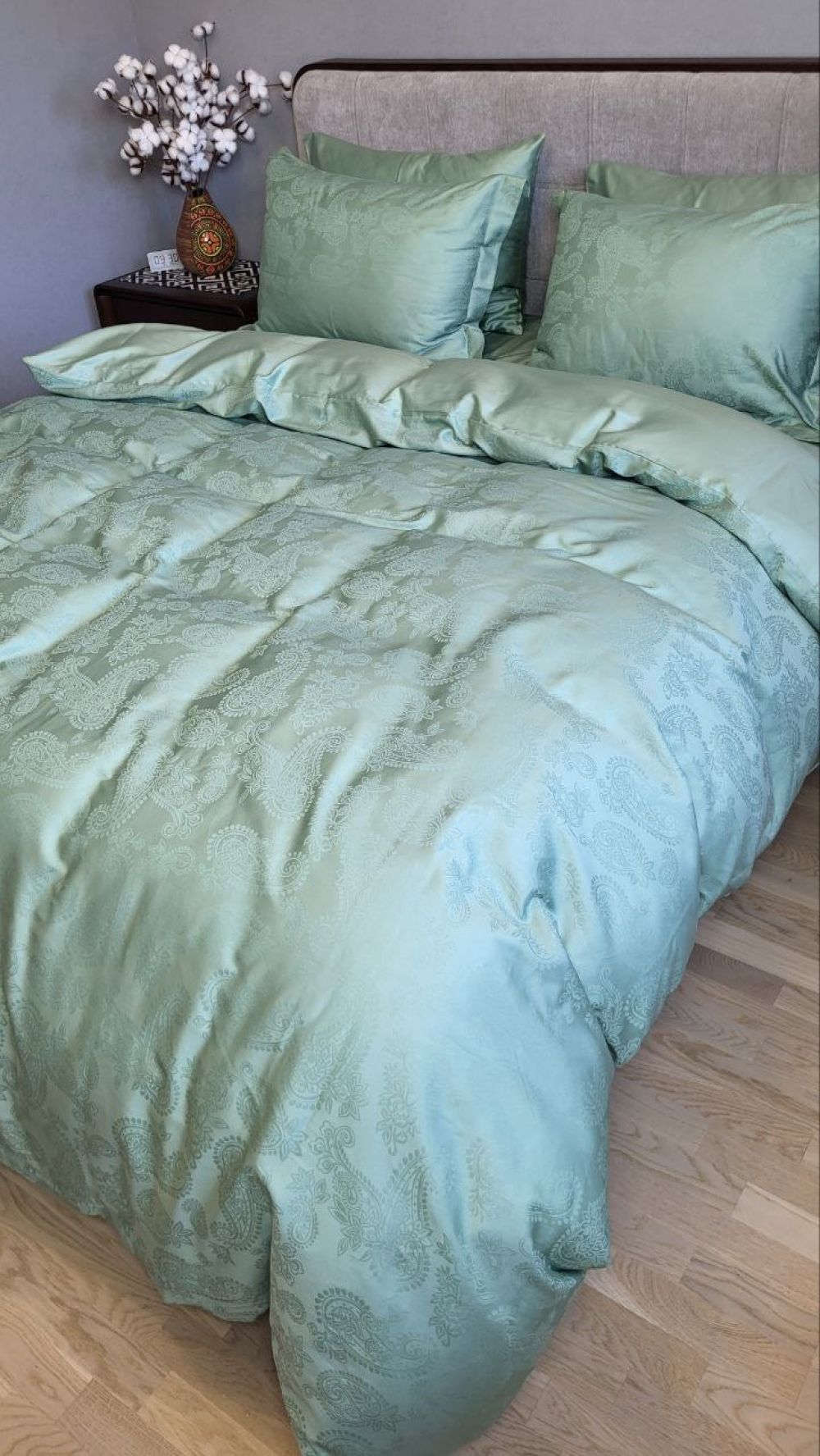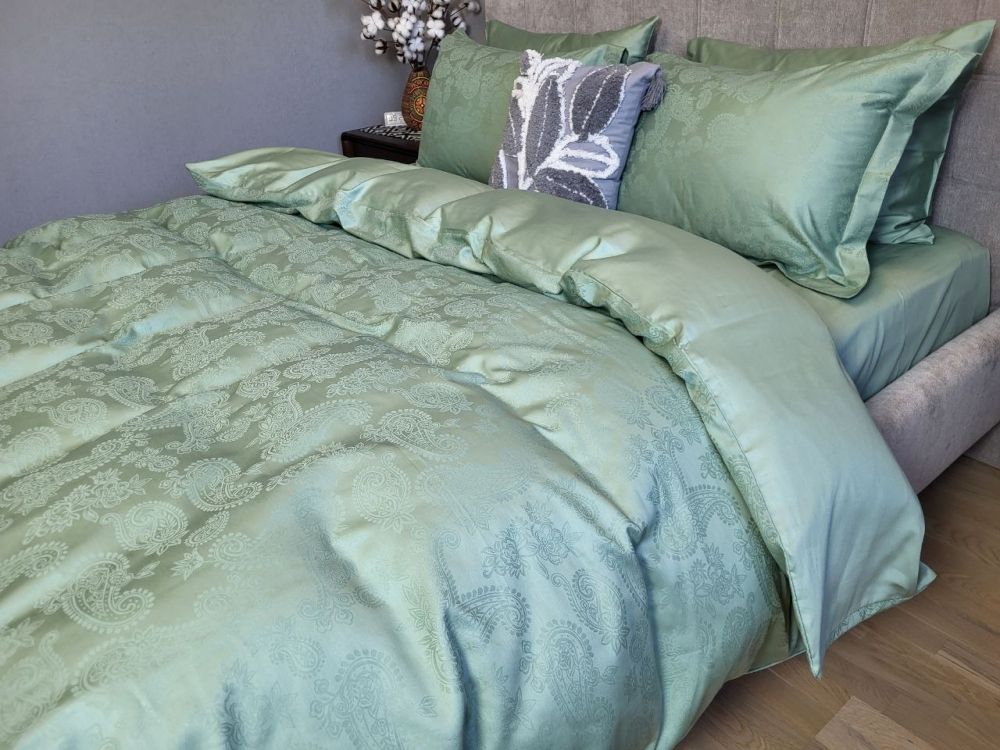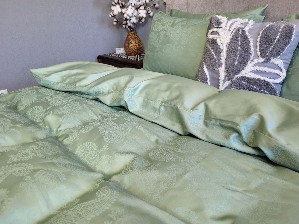 Сатин JACQUARD, PAISLEY GREEN (Полуторний)
