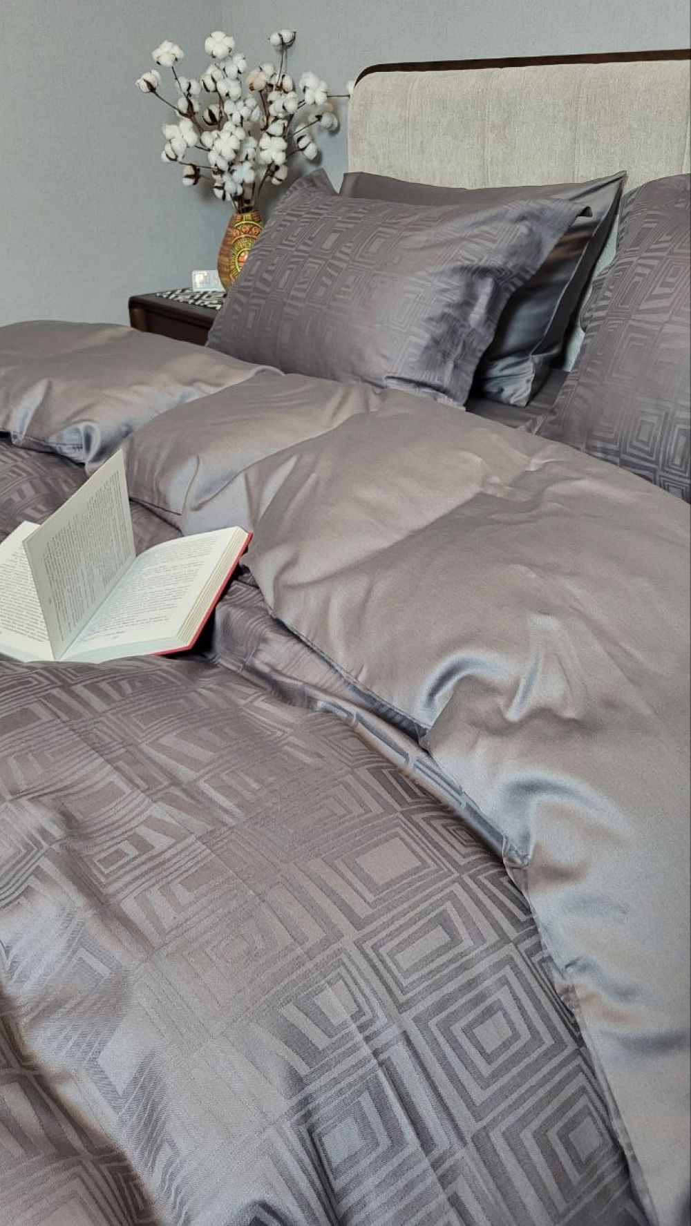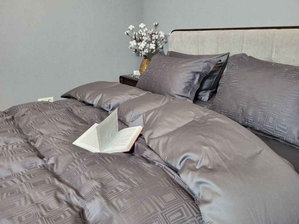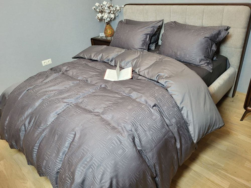 Сатин JACQUARD, SQUARE DARK GREY (Полуторний)