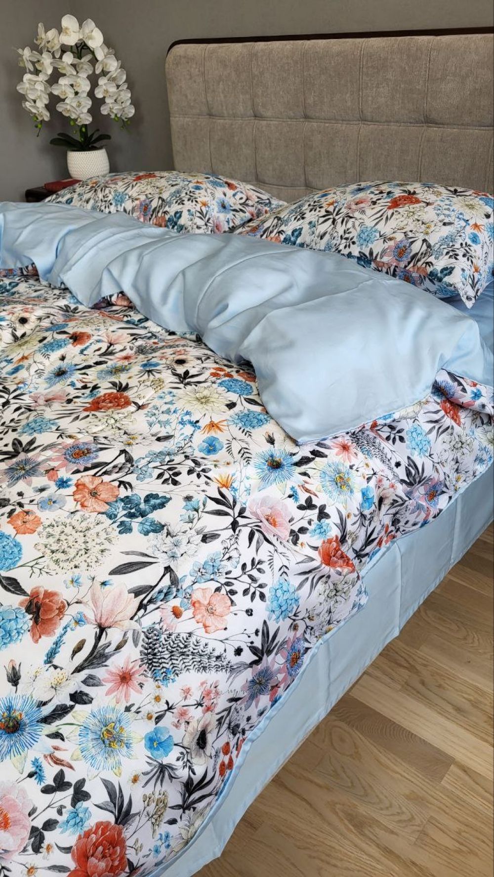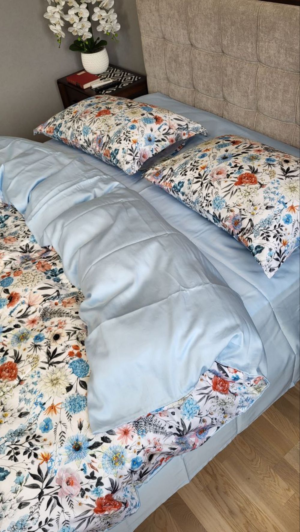Полуторний: підковдра 145см*215см - 1шт, простирадло 145см*220см - 1 шт, наволочка - 2шт. Двоспальний: підковдра 180см*215см - 1шт, простирадло 200см*220см - 1 шт, наволочка- 2шт. Євро: підковдра 200см*220см - 1шт, простирадло 240см*220см - 1 шт, наволочка - 2шт. Сімейний: підковдра 145см*215см - 2шт, простирадло 240см*220см - 1шт, наволочки - 2шт. Полуторний на резинці: підковдра 145*215 - 1шт, простирадло на резинці 90*200*34 (або вкажіть потрібний розмір в коментарях) -1шт, наволочки - 2шт. Двоспальний на резинці: підковдра 180*215 - 1шт, простирадло на резинці 160*200*34 (або вкажіть потрібний розмір в коментарях) -1шт, наволочки-2шт. Євро на резинці: підковдра 200*220см - 1шт, простирадло на резинці 180*200*34см (або вкажіть потрібний розмір в коментарях) - 1шт, наволочки - 2шт. Сімейний на резинці: підковдра 145*215-2шт, простирадло на резинці 180*200*34 (або вкажіть потрібний розмір в коментарях) -1шт, наволочки - 2шт.