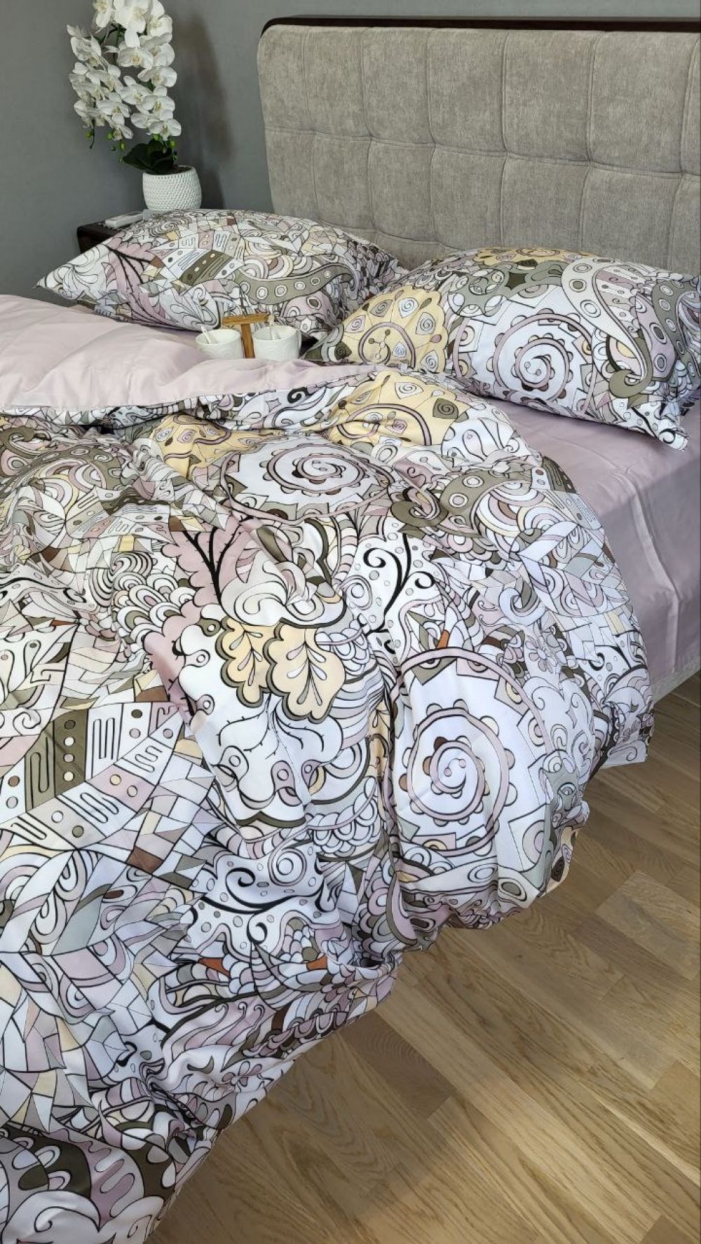 Полуторний: підковдра 145см*215см - 1шт, простирадло 145см*220см - 1 шт, наволочка - 2шт. Двоспальний: підковдра 180см*215см - 1шт, простирадло 200см*220см - 1 шт, наволочка- 2шт. Євро: підковдра 200см*220см - 1шт, простирадло 240см*220см - 1 шт, наволочка - 2шт. Сімейний: підковдра 145см*215см - 2шт, простирадло 240см*220см - 1шт, наволочки - 2шт. Полуторний на резинці: підковдра 145*215 - 1шт, простирадло на резинці 90*200*34 (або вкажіть потрібний розмір в коментарях) -1шт, наволочки - 2шт. Двоспальний на резинці: підковдра 180*215 - 1шт, простирадло на резинці 160*200*34 (або вкажіть потрібний розмір в коментарях) -1шт, наволочки-2шт. Євро на резинці: підковдра 200*220см - 1шт, простирадло на резинці 180*200*34см (або вкажіть потрібний розмір в коментарях) - 1шт, наволочки - 2шт. Сімейний на резинці: підковдра 145*215-2шт, простирадло на резинці 180*200*34 (або вкажіть потрібний розмір в коментарях) -1шт, наволочки - 2шт.