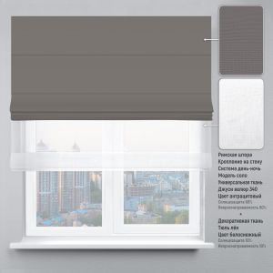 Римська штора День-Ніч Тюль/Велюр антрацитовий