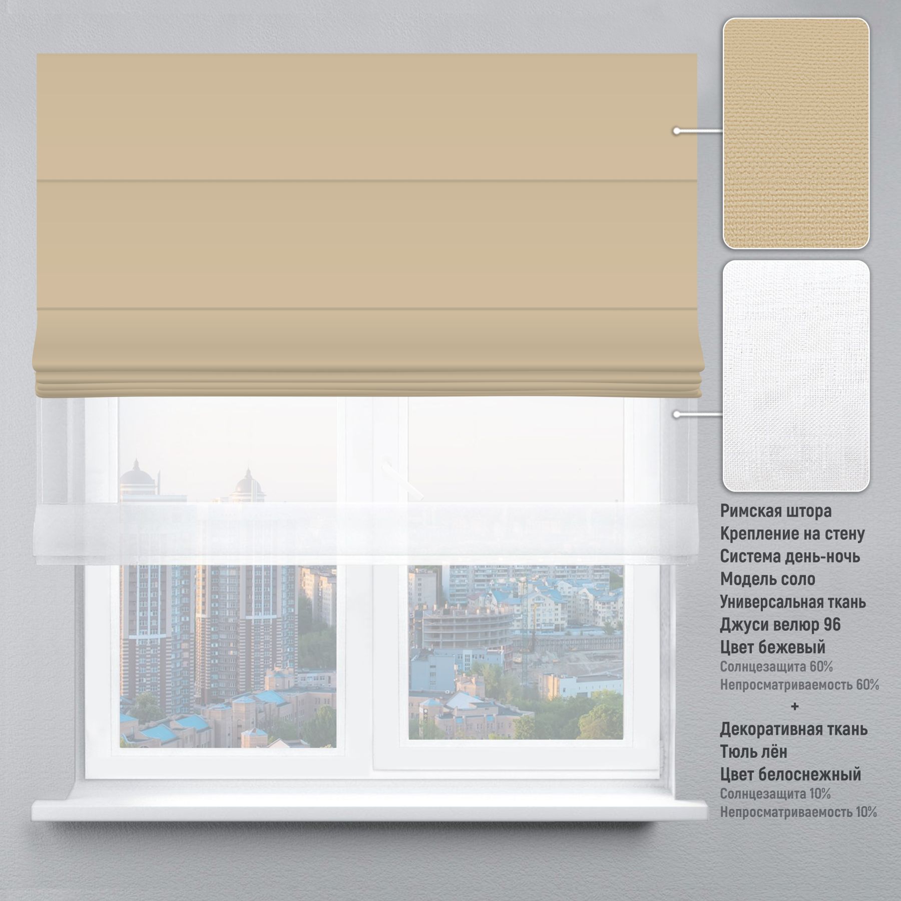 Римська штора День-Ніч Тюль/Велюр бежевий