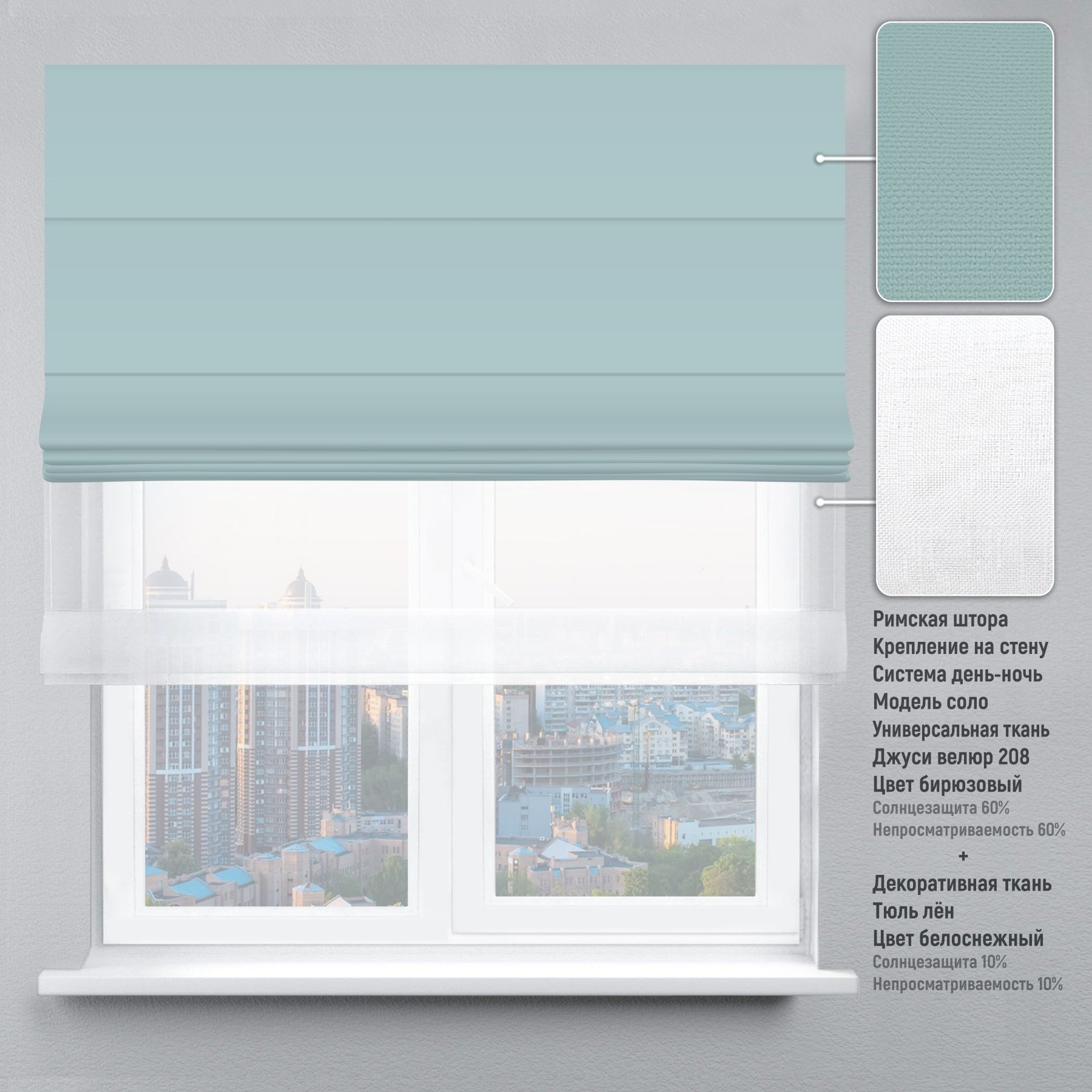 Римська штора День-Ніч Тюль/Велюр бірюзовий