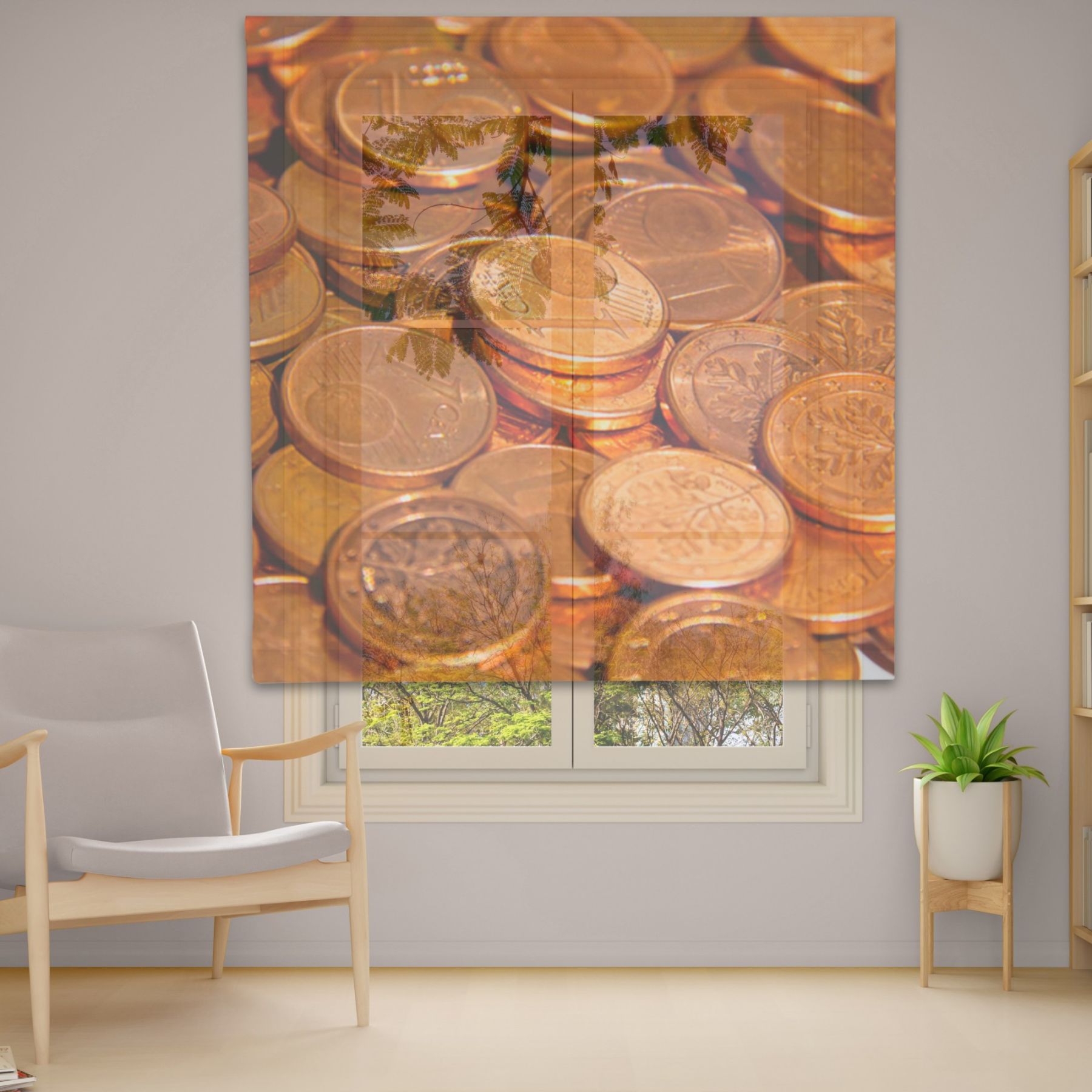 Римські штори з фотодруком на тюлі з ланцюговим карнизом DimShtor - це сучасні, функціональні та практичні штори.