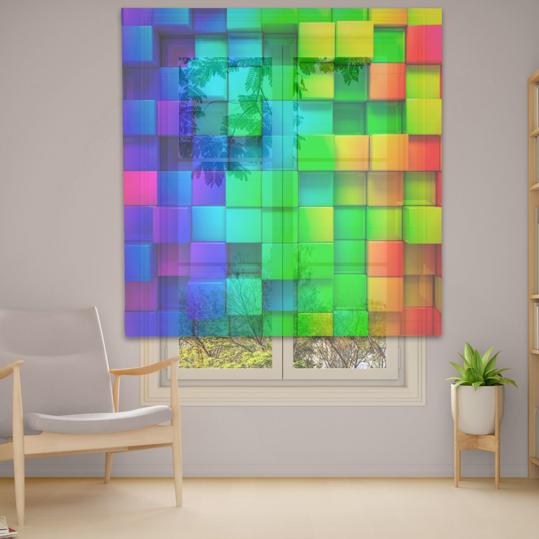 Римські штори з фотодруком на тюлі з ланцюговим карнизом DimShtor - це сучасні, функціональні та практичні штори.
