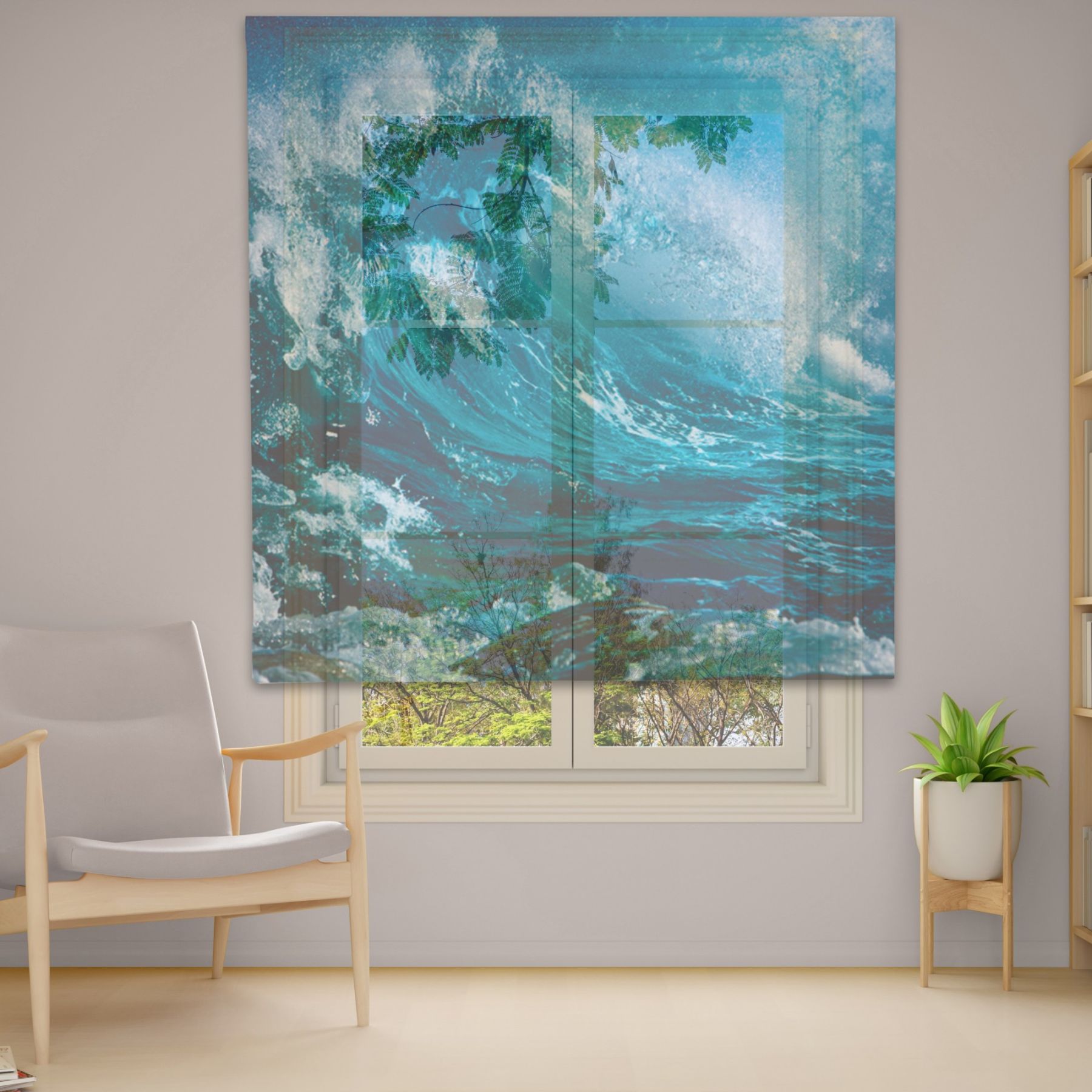 Римські штори з фотодруком на тюлі з ланцюговим карнизом DimShtor - це сучасні, функціональні та практичні штори.