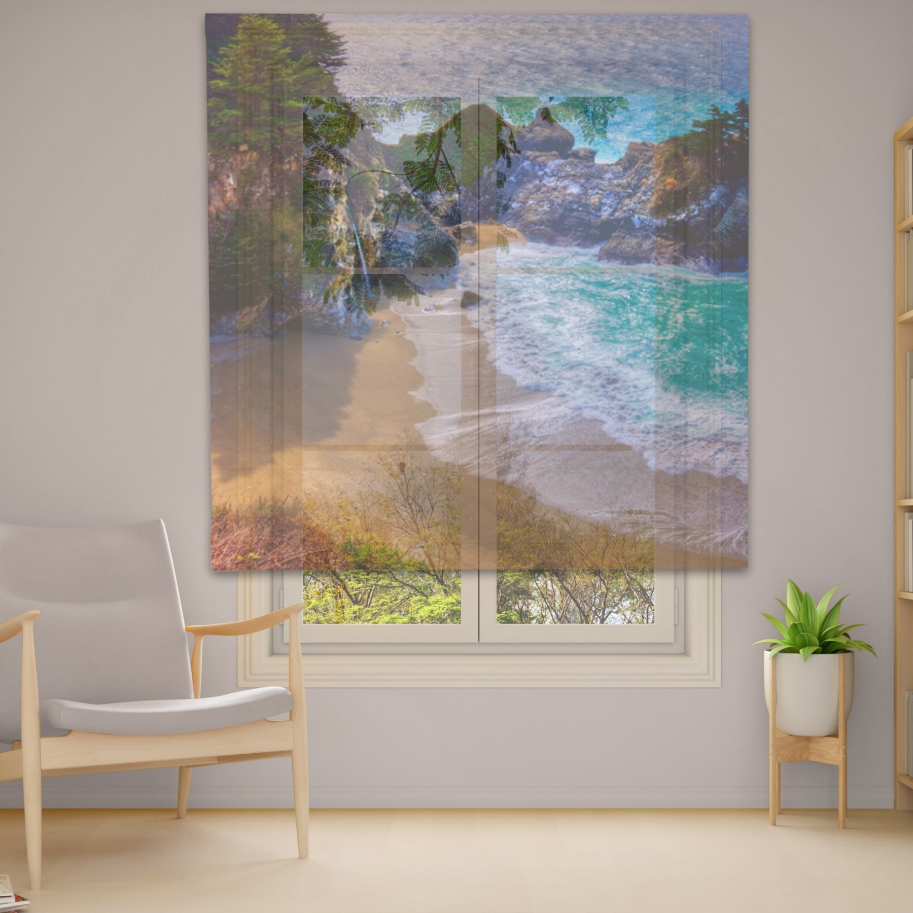 Римські штори з фотодруком на тюлі з ланцюговим карнизом DimShtor - це сучасні, функціональні та практичні штори.