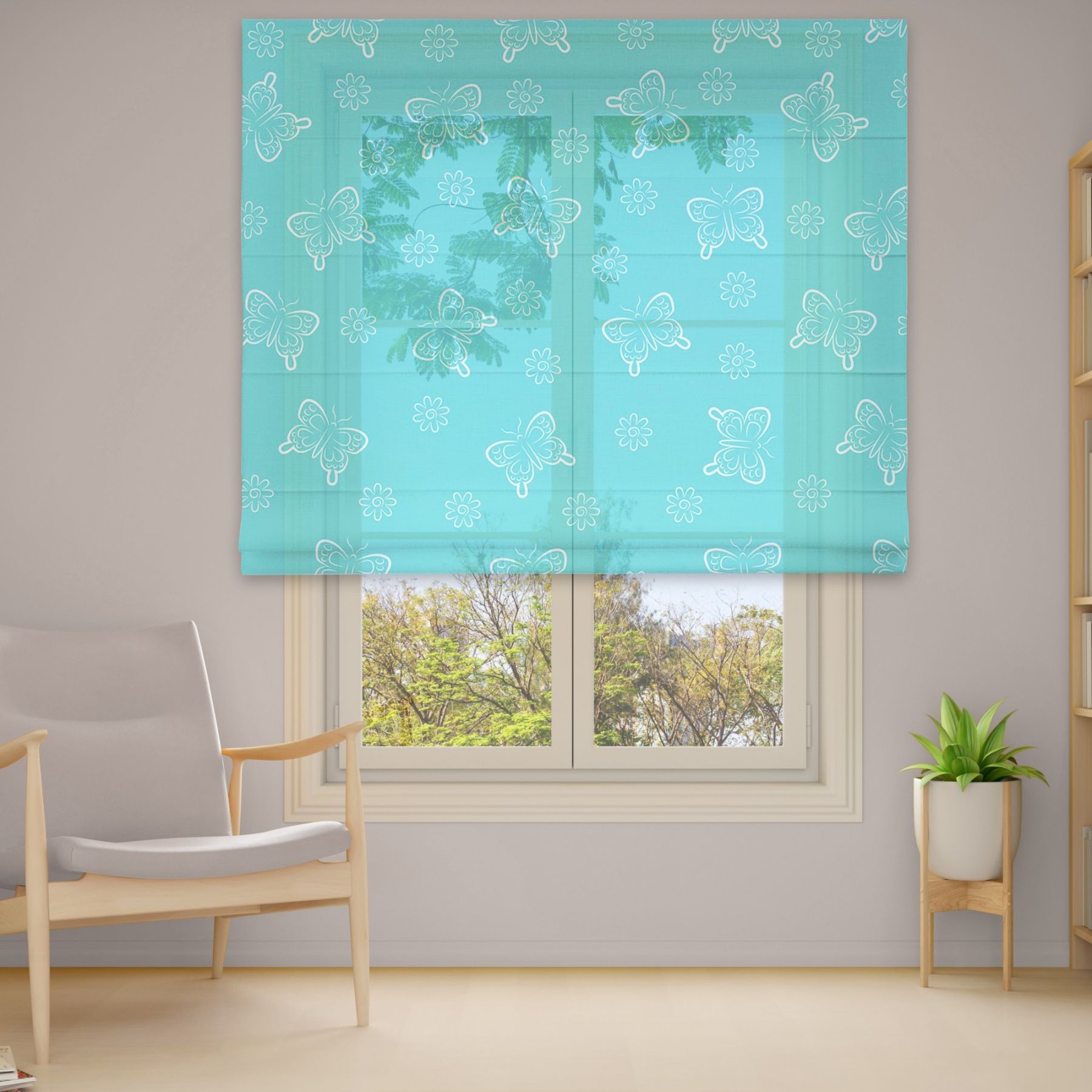 Римські штори з фотодруком на тюлі з ланцюговим карнизом DimShtor - це сучасні, функціональні та практичні штори.