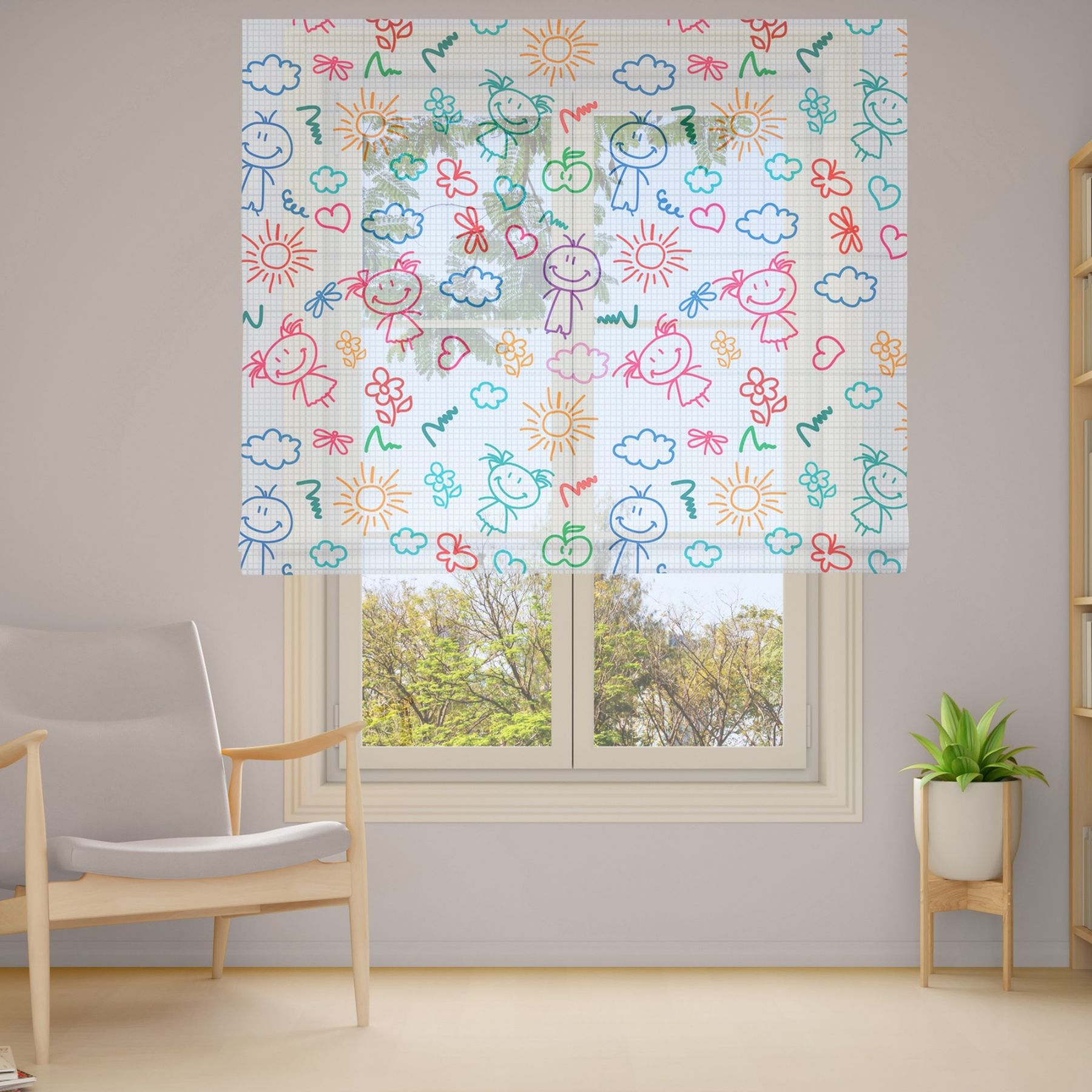 Римські штори з фотодруком на тюлі з ланцюговим карнизом DimShtor - це сучасні, функціональні та практичні штори.