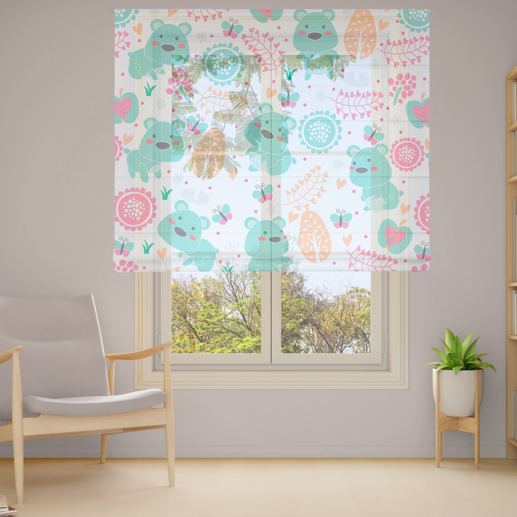 Римські штори з фотодруком на тюлі з ланцюговим карнизом DimShtor - це сучасні, функціональні та практичні штори.