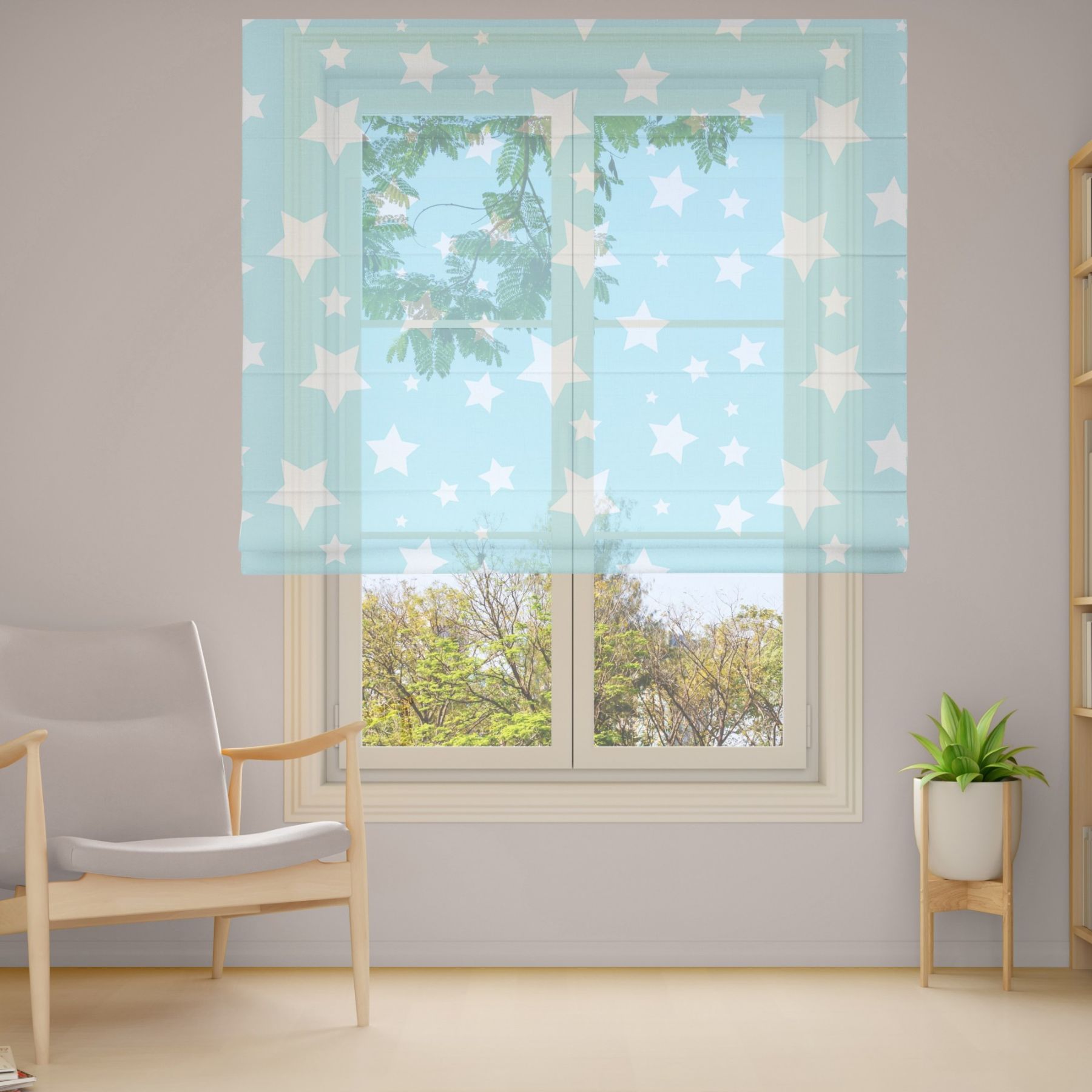 Римські штори з фотодруком на тюлі з ланцюговим карнизом DimShtor - це сучасні, функціональні та практичні штори.