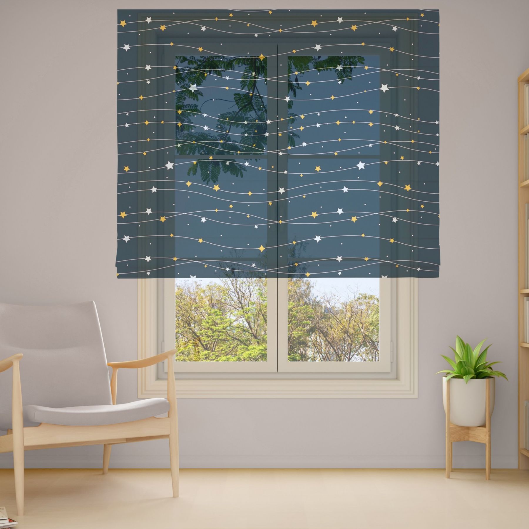 Римські штори з фотодруком на тюлі з ланцюговим карнизом DimShtor - це сучасні, функціональні та практичні штори.