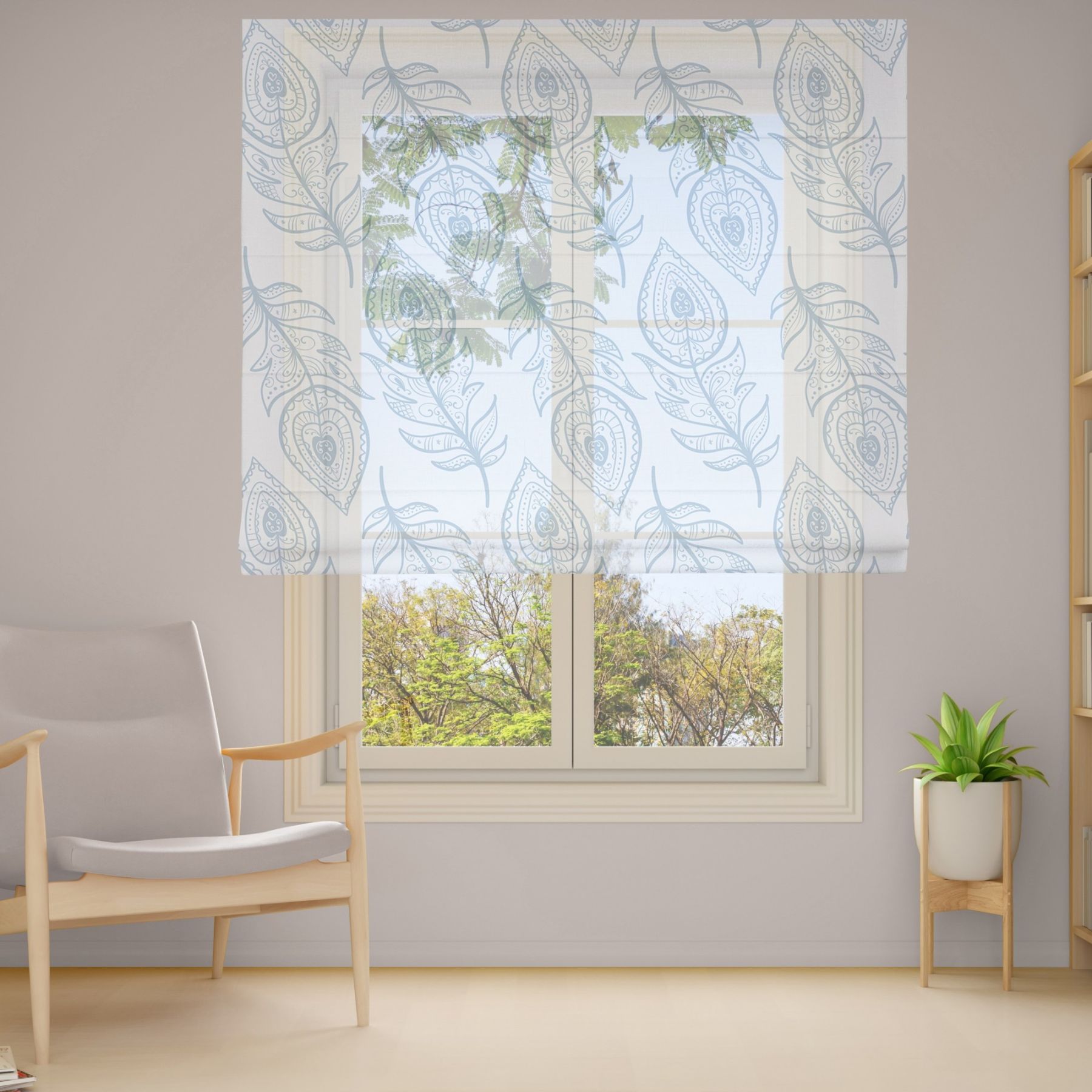 Римські штори з фотодруком на тюлі з ланцюговим карнизом DimShtor - це сучасні, функціональні та практичні штори.