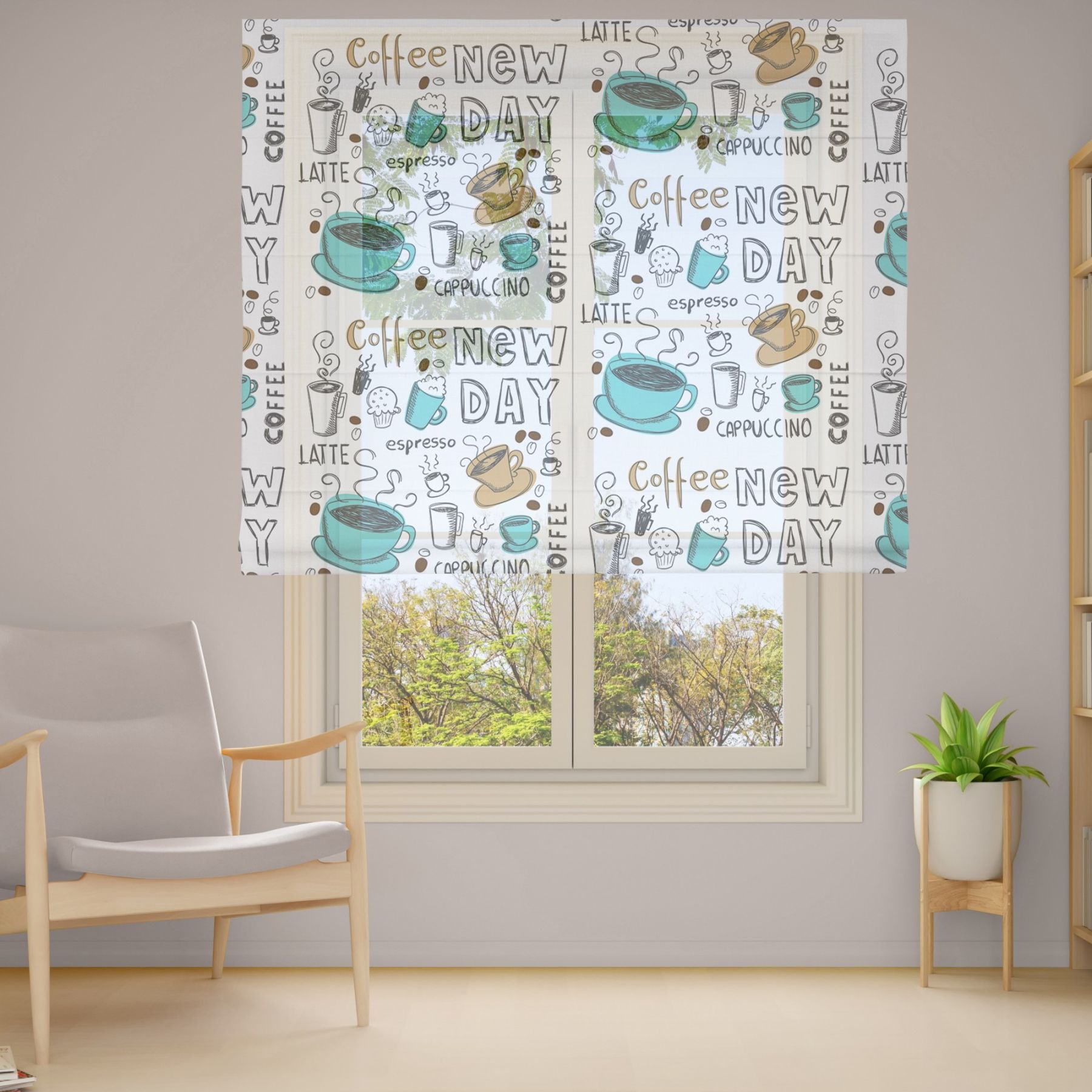 Римські штори з фотодруком на тюлі з ланцюговим карнизом DimShtor - це сучасні, функціональні та практичні штори.