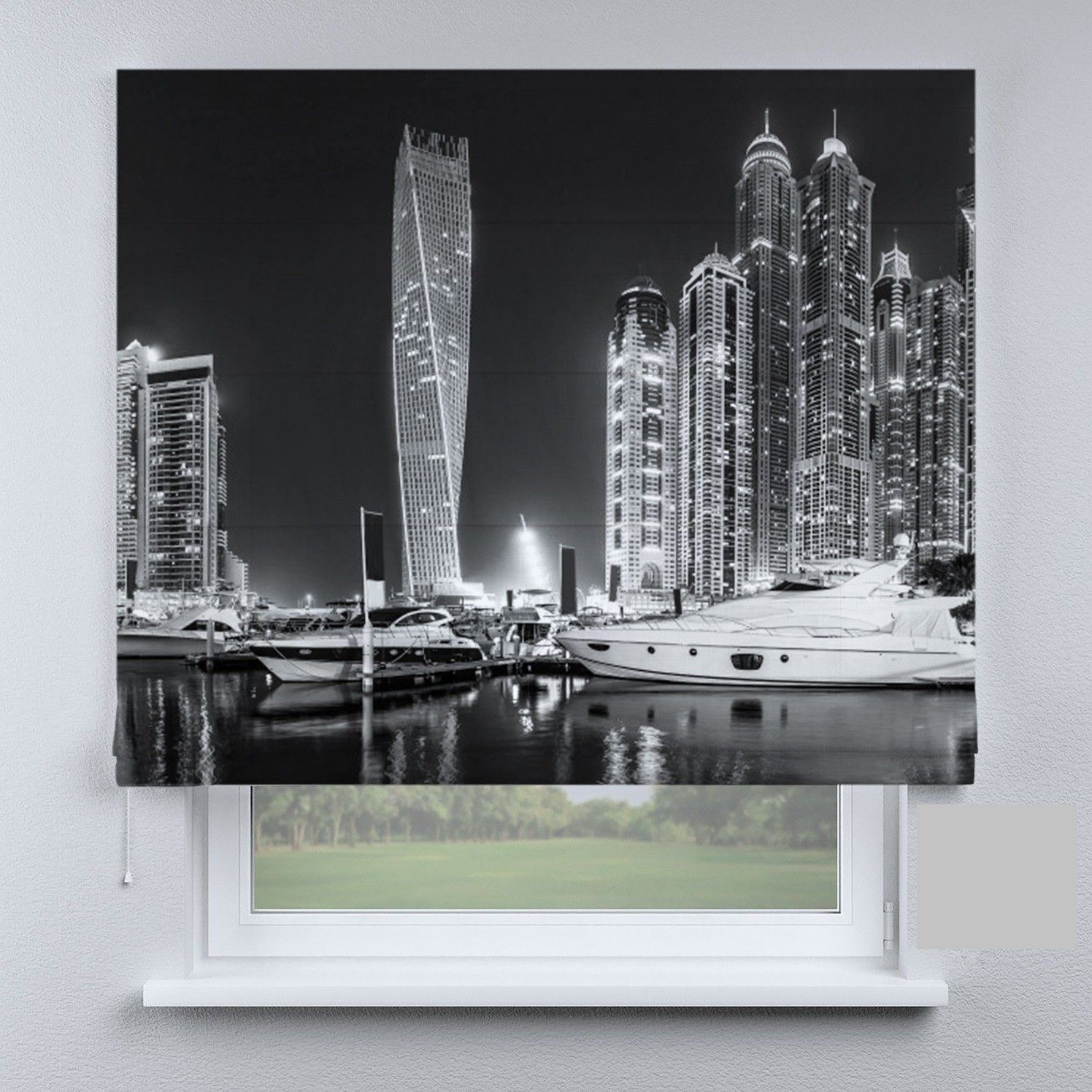Римська штора з фотодруком катер на чорному фоні