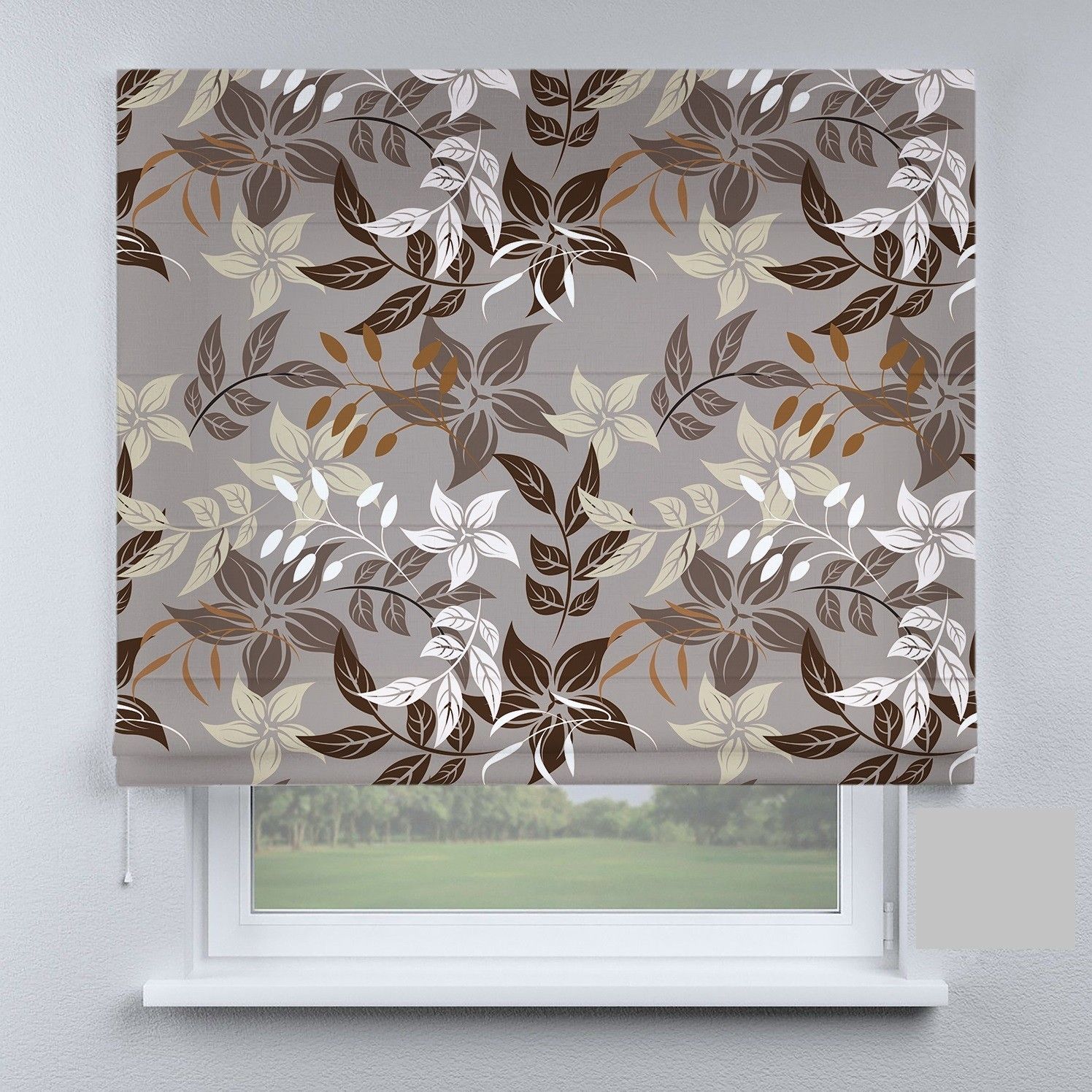 Римська штора з фотодруком квіти на коричневому фоні