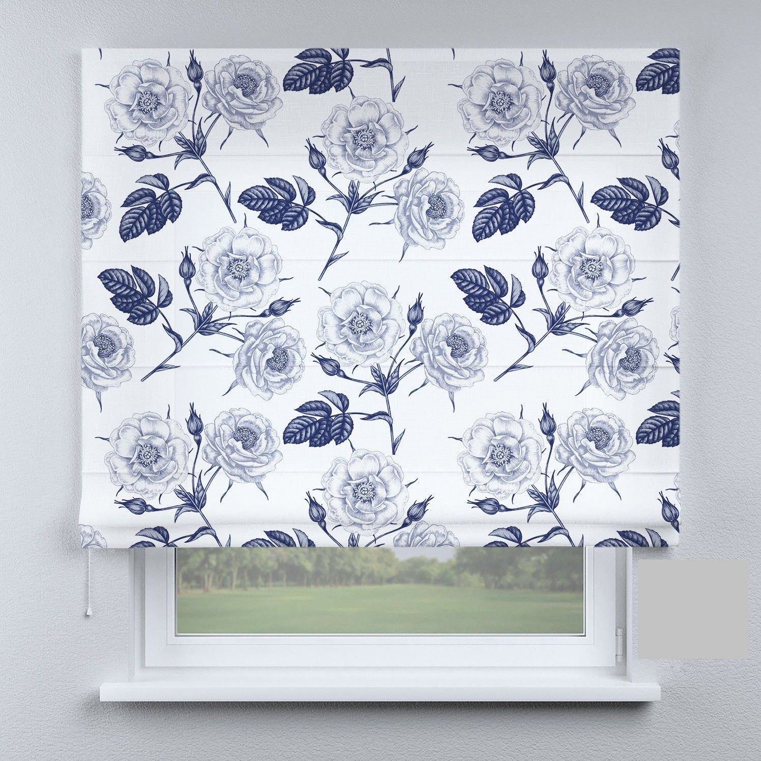 Римська штора з фотодруком квіти темно-сині
