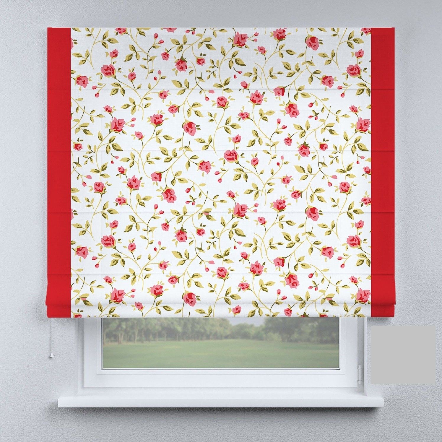Римська штора з фотодруком квіти з червоними кантами