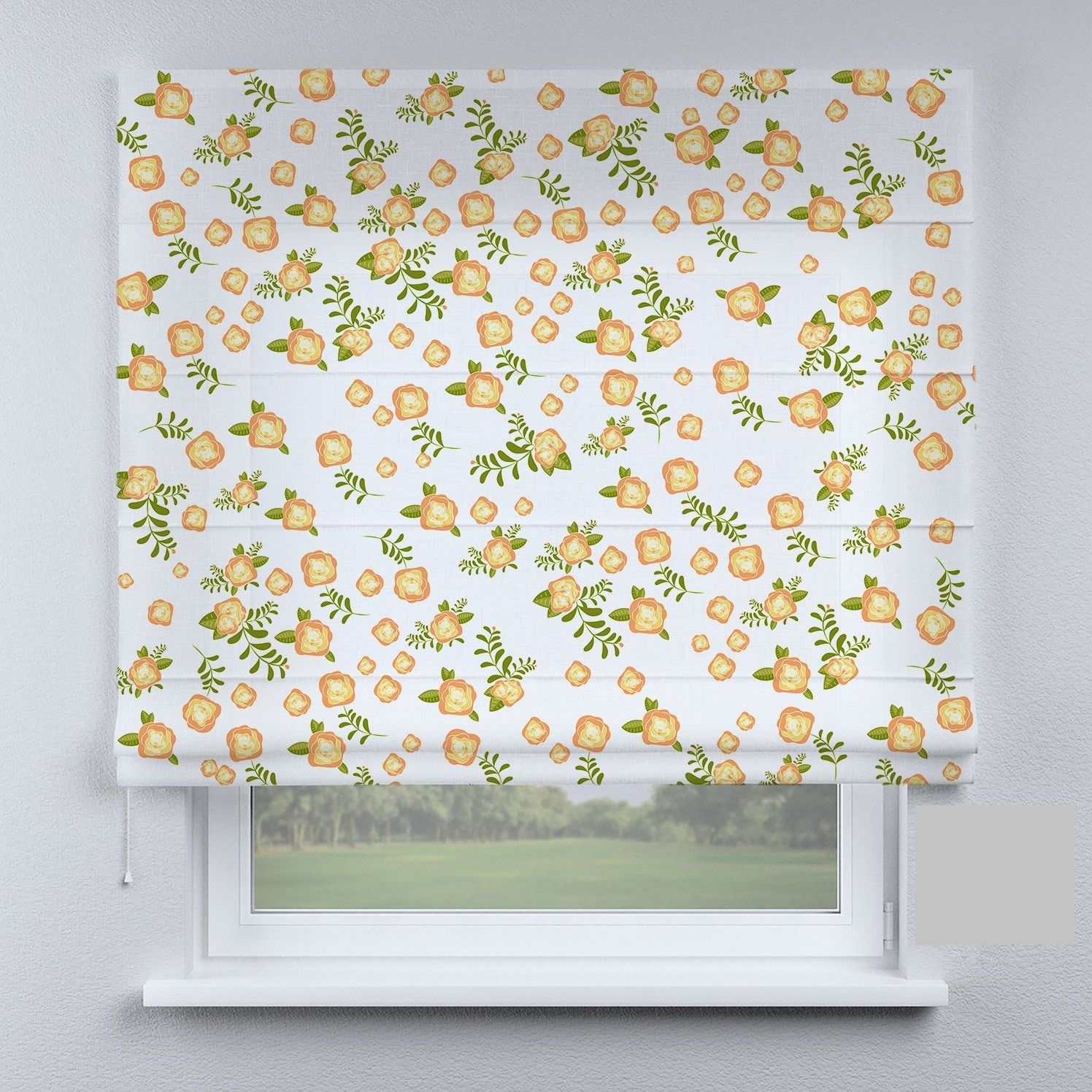 Римська штора з фотодруком маленькі помаранчеві квіти