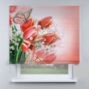 Римська штора з фотодруком тюльпани і метелики