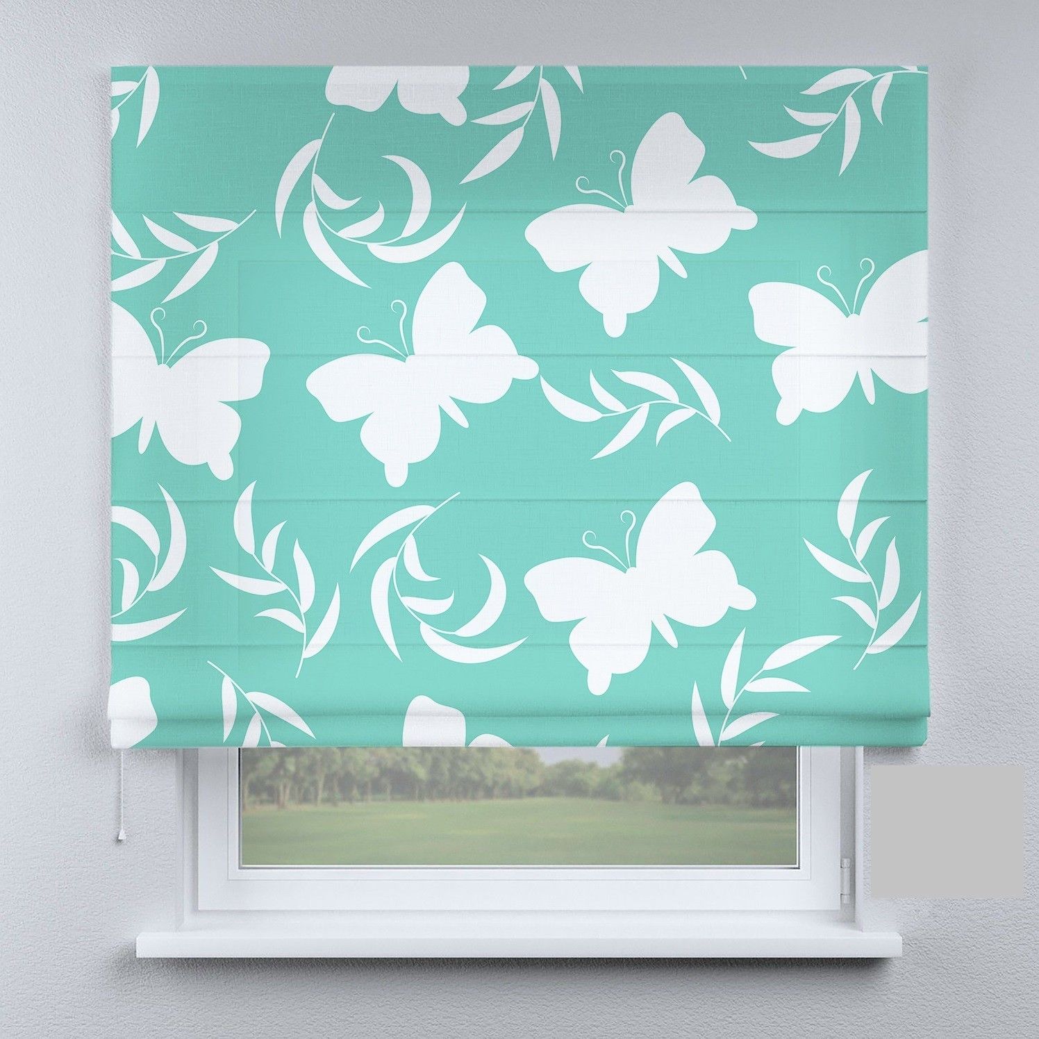 Римська штора з фотодруком великі метелики на бірюзовому фоні