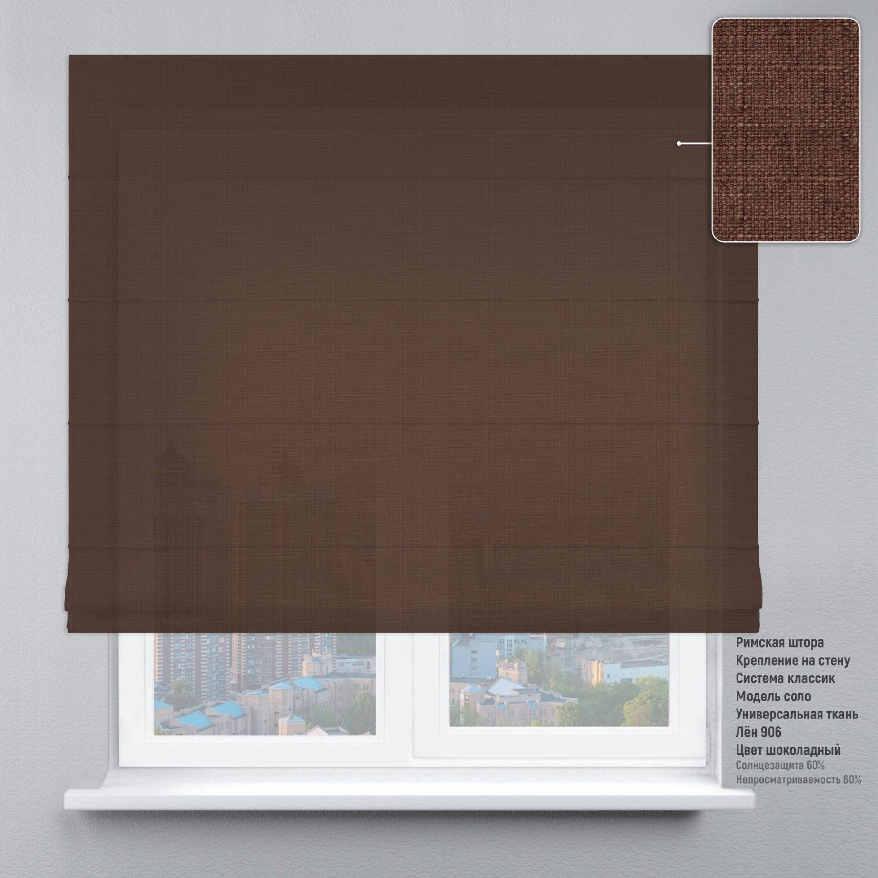 Римська штора Льон шоколадний
