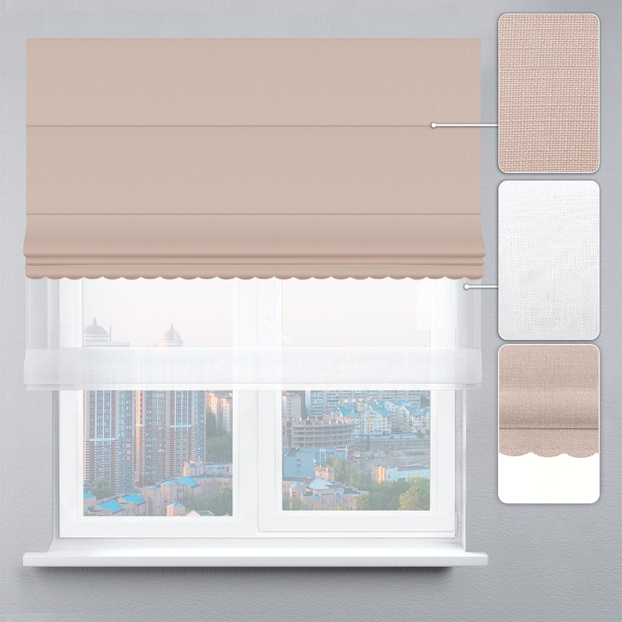 Римська штора День-Ніч Тюль/Рогожка Преміум з ланцюжковим карнизом з ажуром бежевий