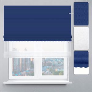 Римська штора День-Ніч Тюль/Велюр із ланцюжковим карнизом з ажуром синій