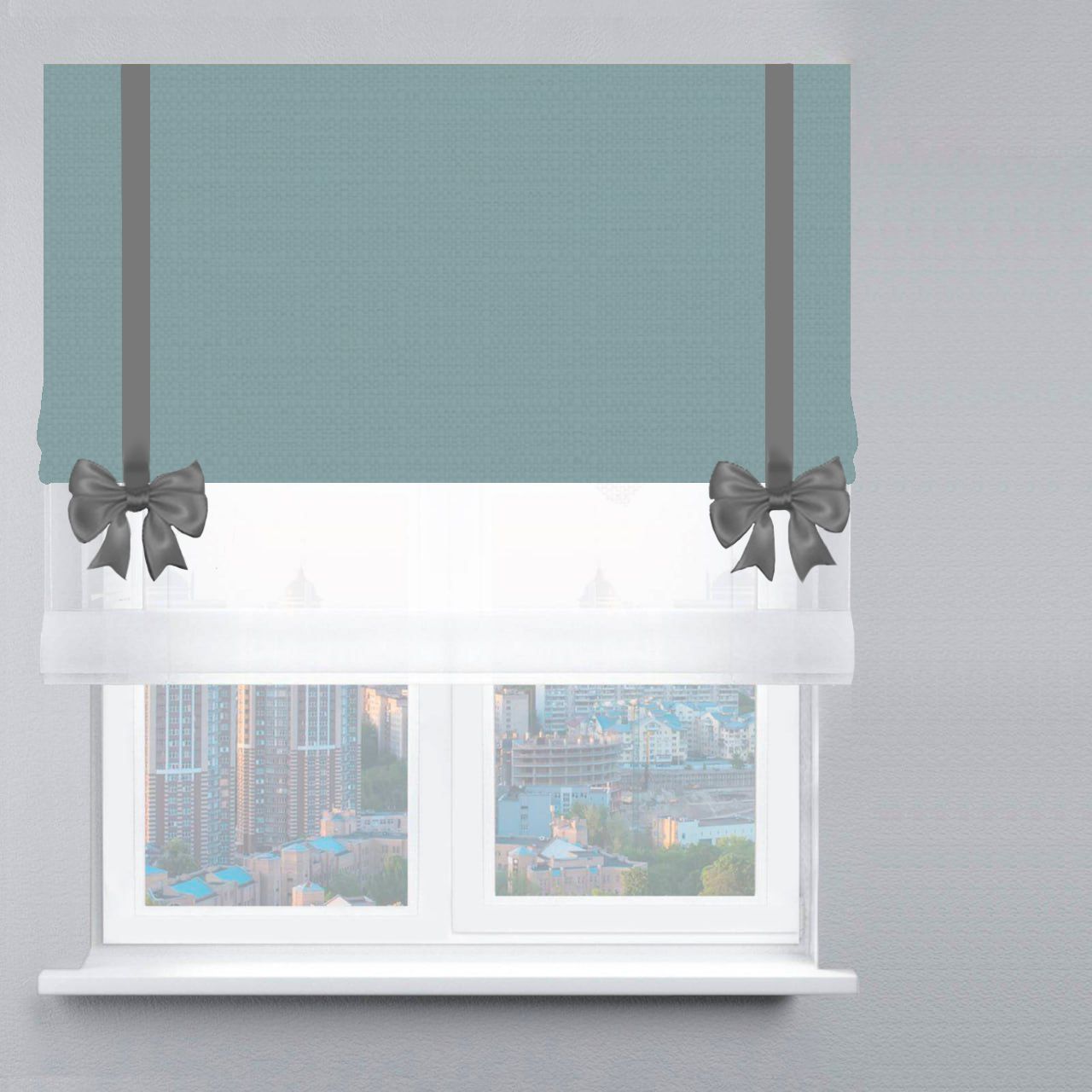 Римська штора День-Ніч Тюль/Дімаут з ланцюжковим карнизом з бантами бірюзовий