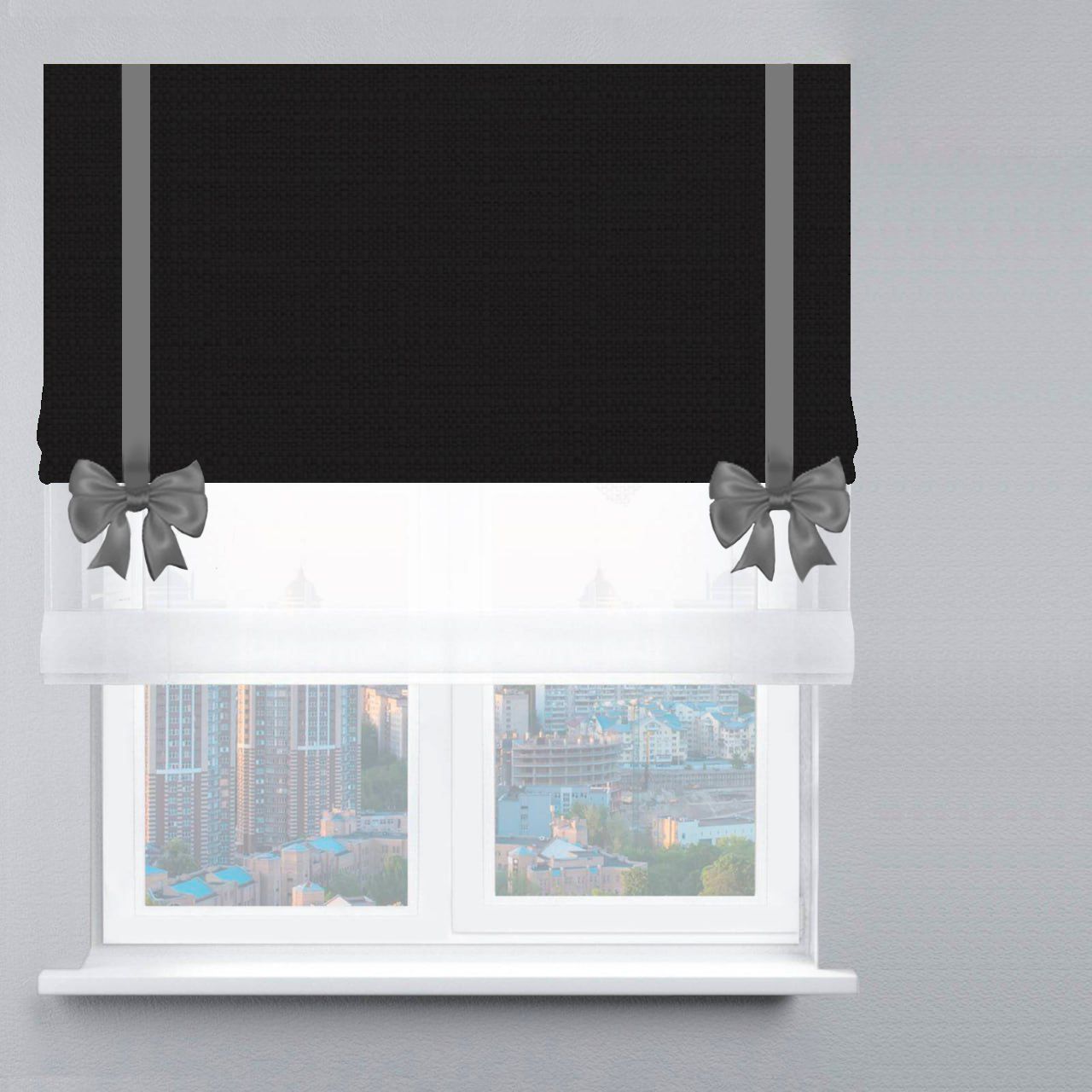 Римська штора День-Ніч Тюль/Велюр із ланцюжковим карнизом з бантами чорний
