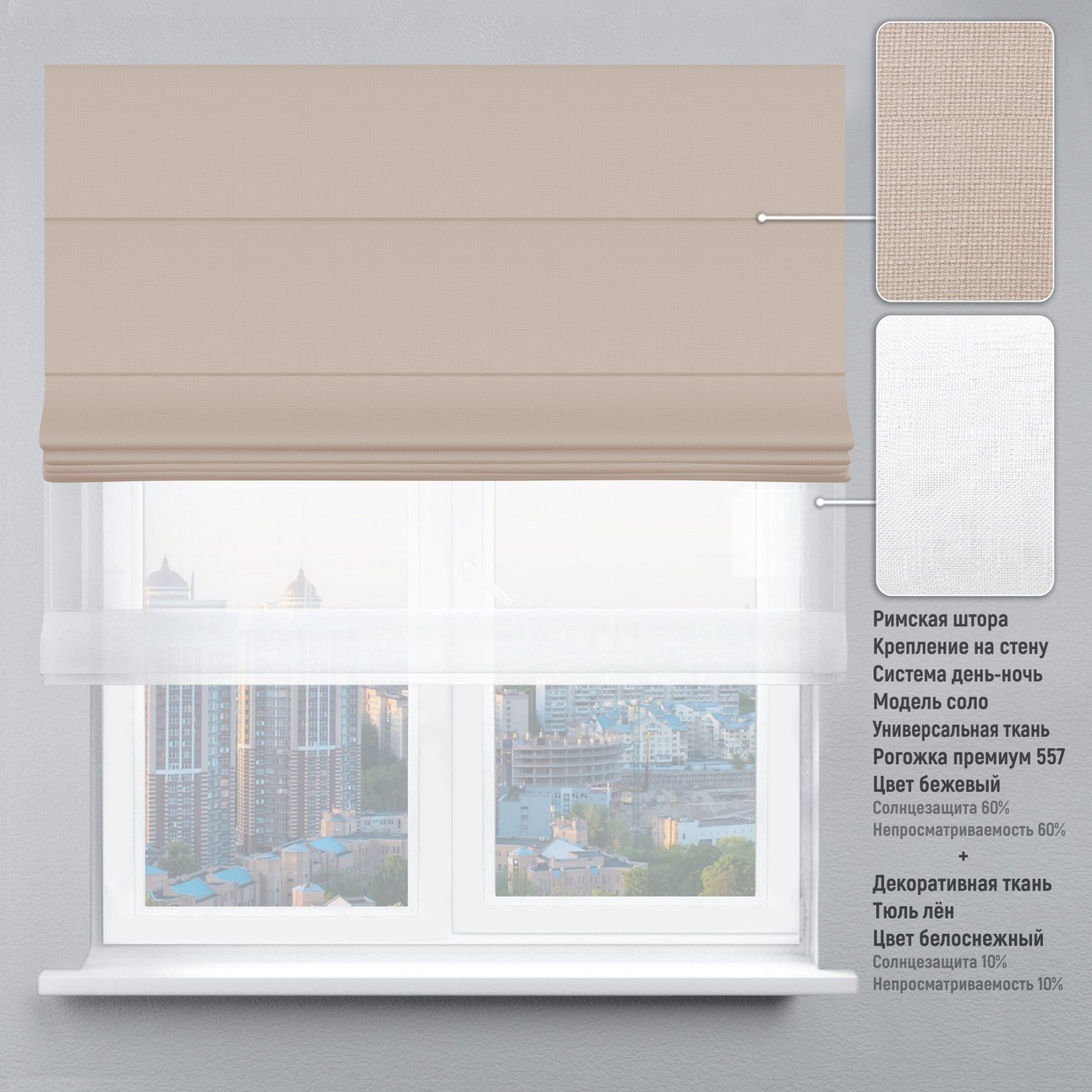 Римська штора День-Ніч День-Ніч Тюль/Рогожка Преміум з ланцюжковим карнизом бежевий