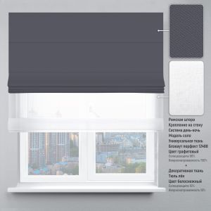 Римська штора День-Ніч Тюль/Блекаут Перфект з ланцюжковим карнизом графітовий