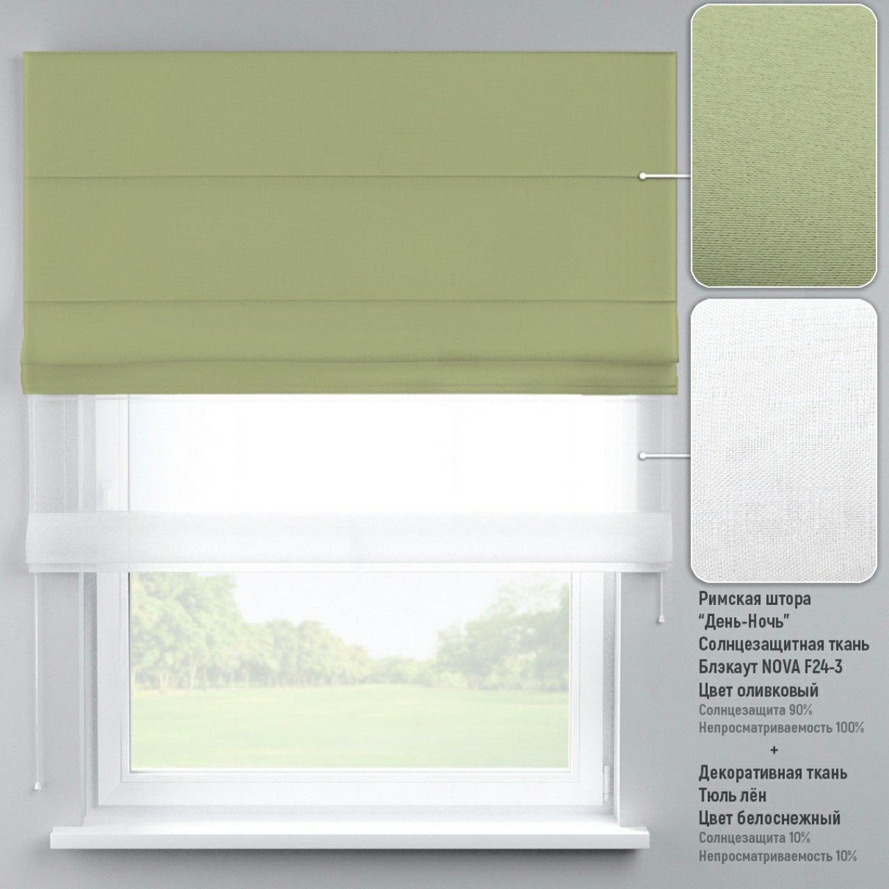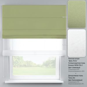 Римська штора День-Ніч Тюль/Блекаут з ланцюжковим карнизом оливковий