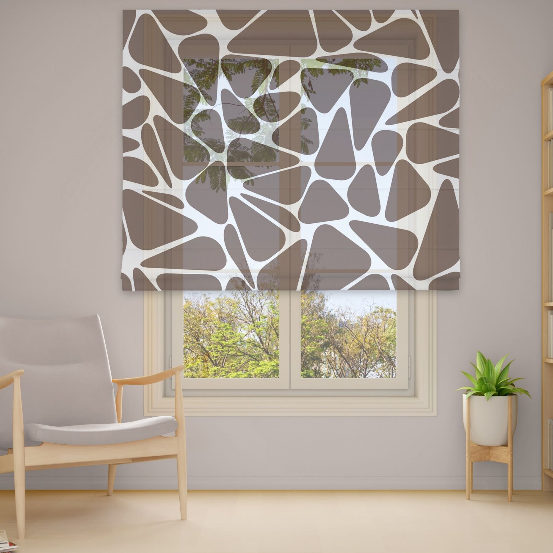 Римські штори з фотодруком на тюлі з ланцюговим карнизом DimShtor - це сучасні, функціональні та практичні штори.