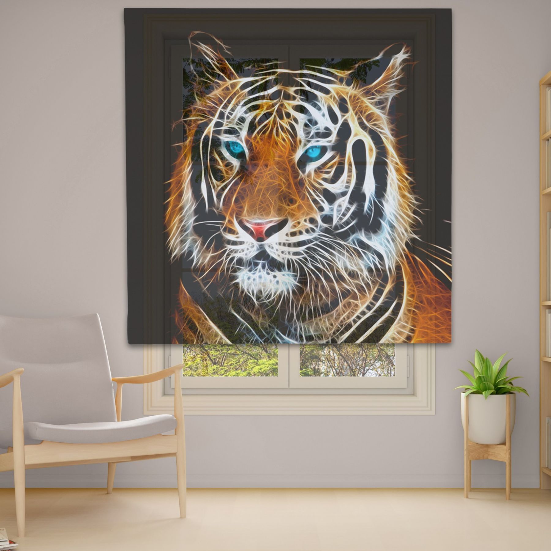 Римські штори з фотодруком на тюлі з ланцюговим карнизом DimShtor - це сучасні, функціональні та практичні штори.