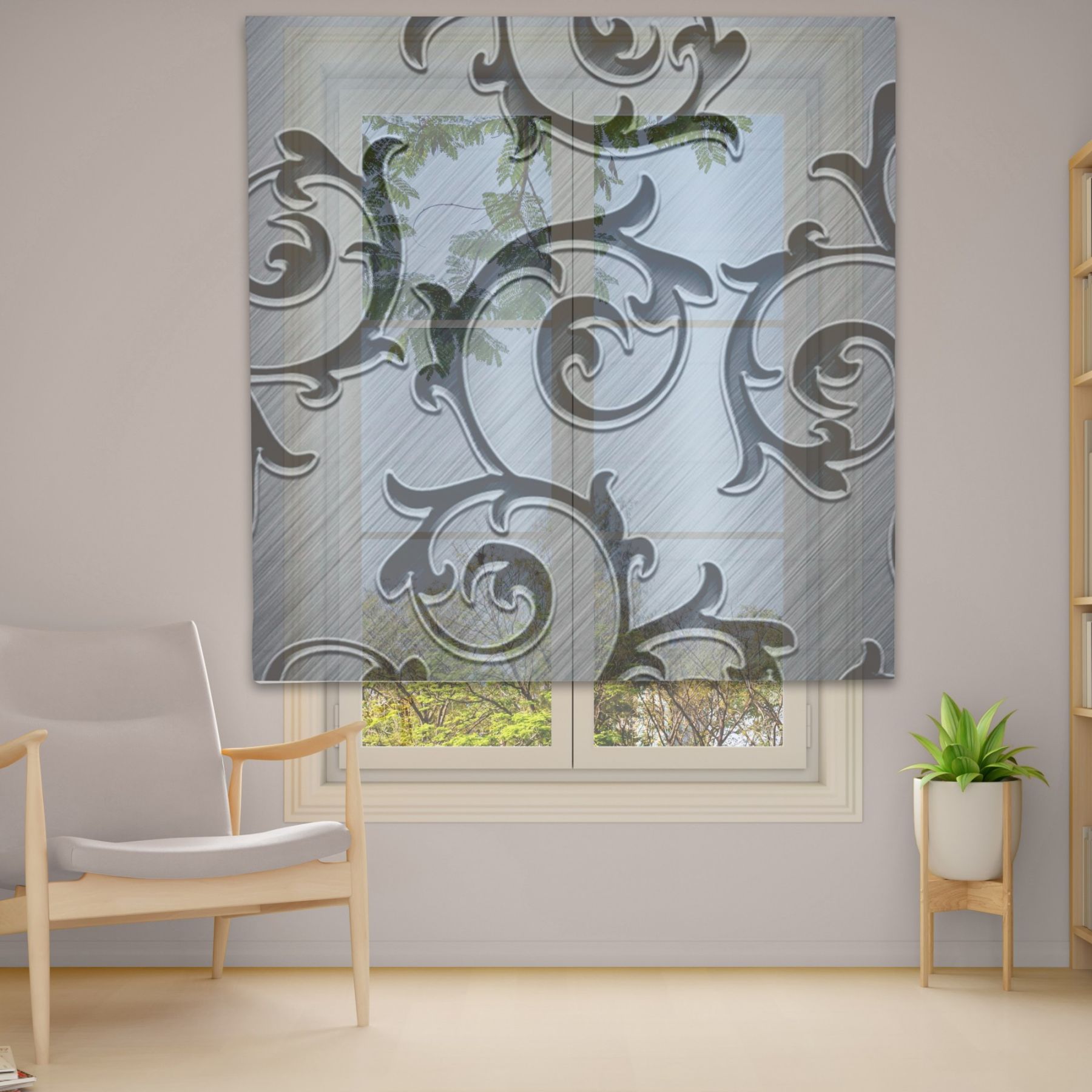 Римські штори з фотодруком на тюлі з ланцюговим карнизом DimShtor - це сучасні, функціональні та практичні штори.