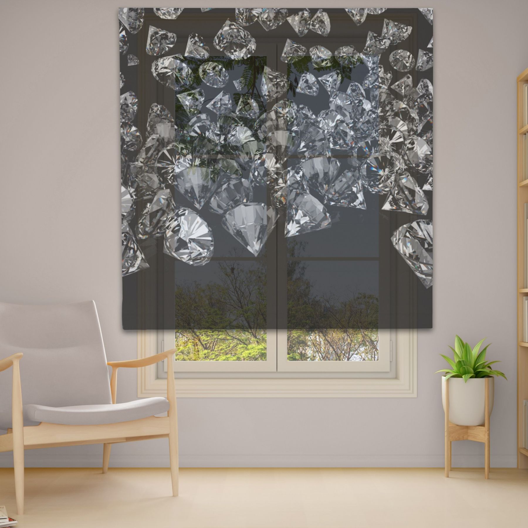 Римські штори з фотодруком на тюлі з ланцюговим карнизом DimShtor - це сучасні, функціональні та практичні штори.