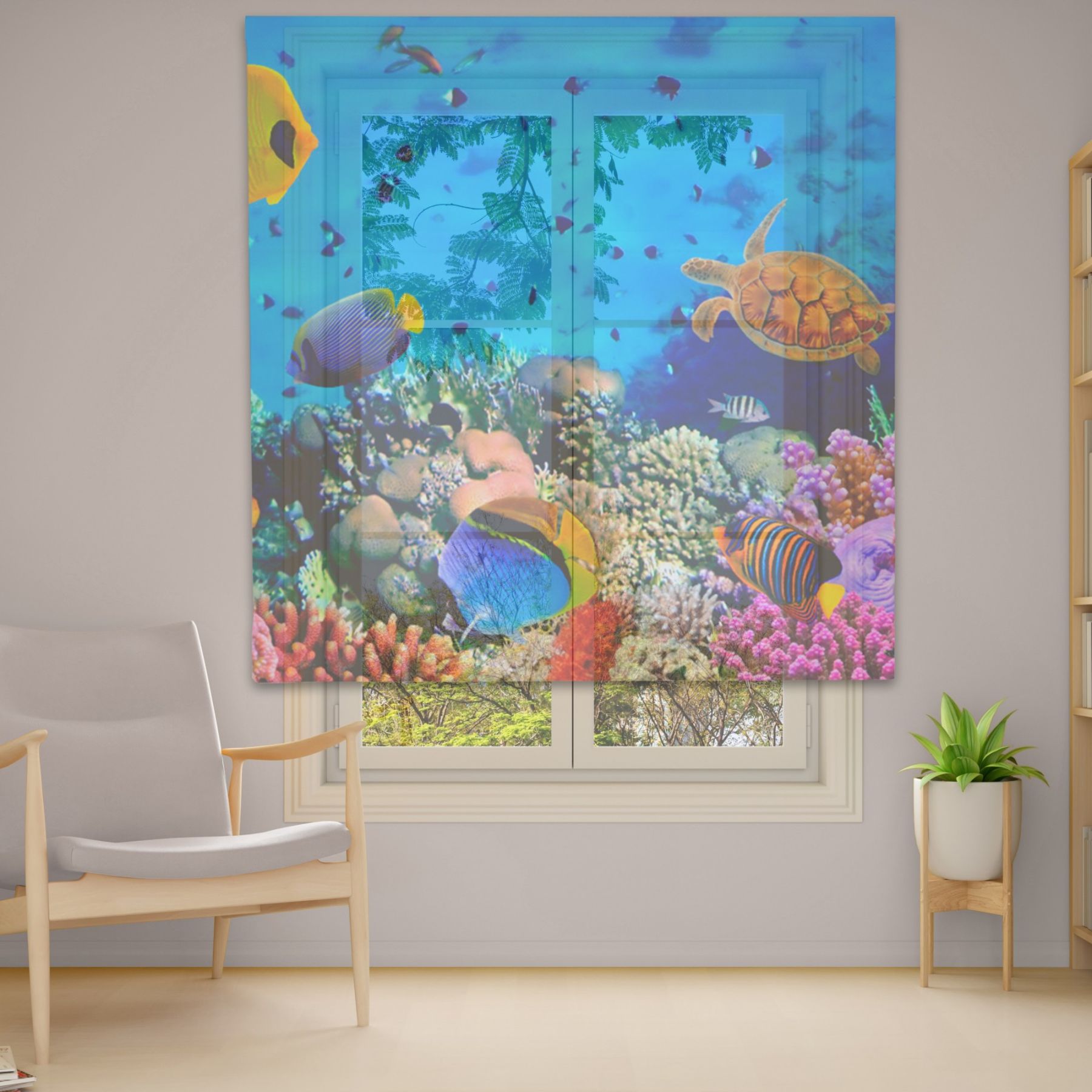 Римські штори з фотодруком на тюлі з ланцюговим карнизом DimShtor - це сучасні, функціональні та практичні штори.