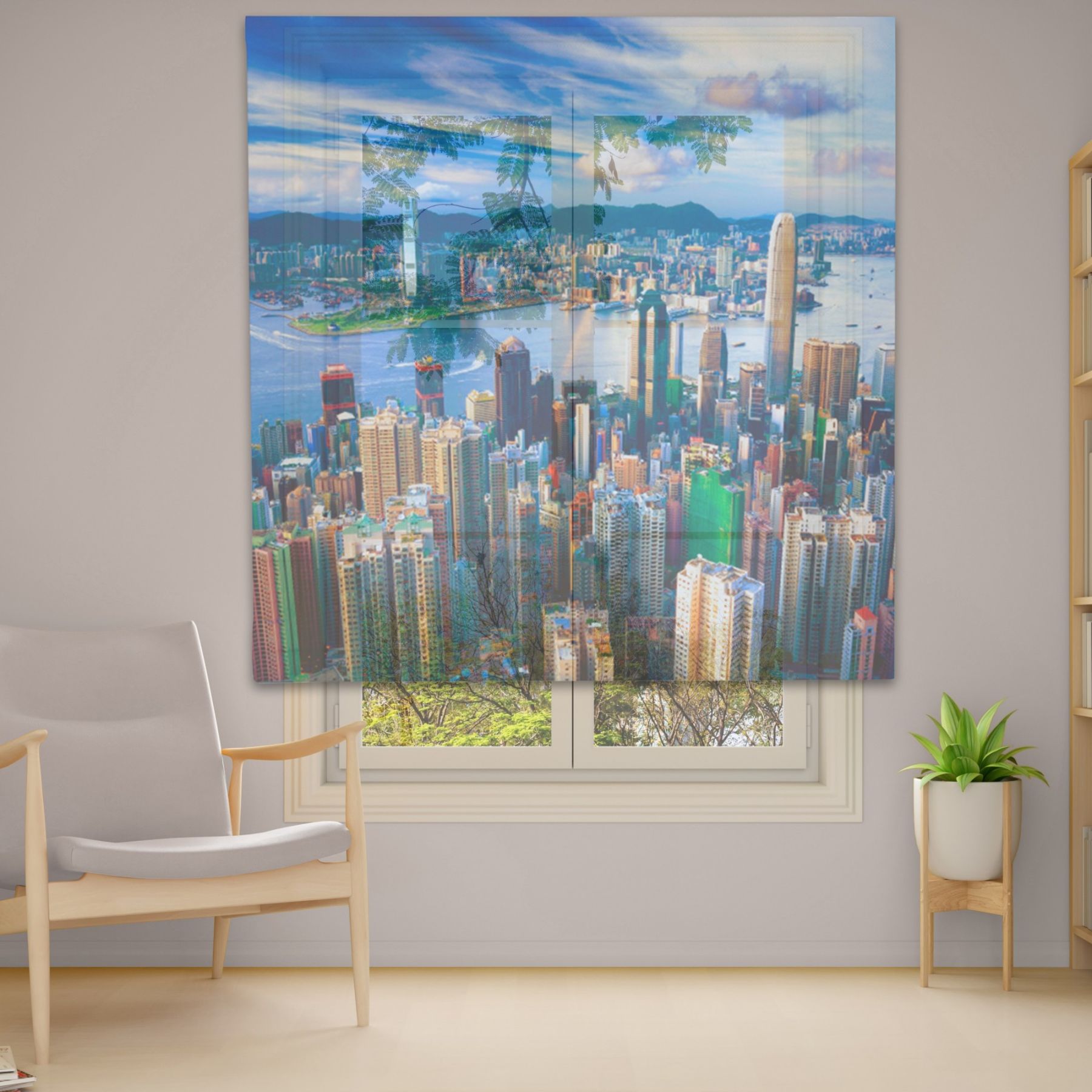 Римські штори з фотодруком на тюлі з ланцюговим карнизом DimShtor - це сучасні, функціональні та практичні штори.