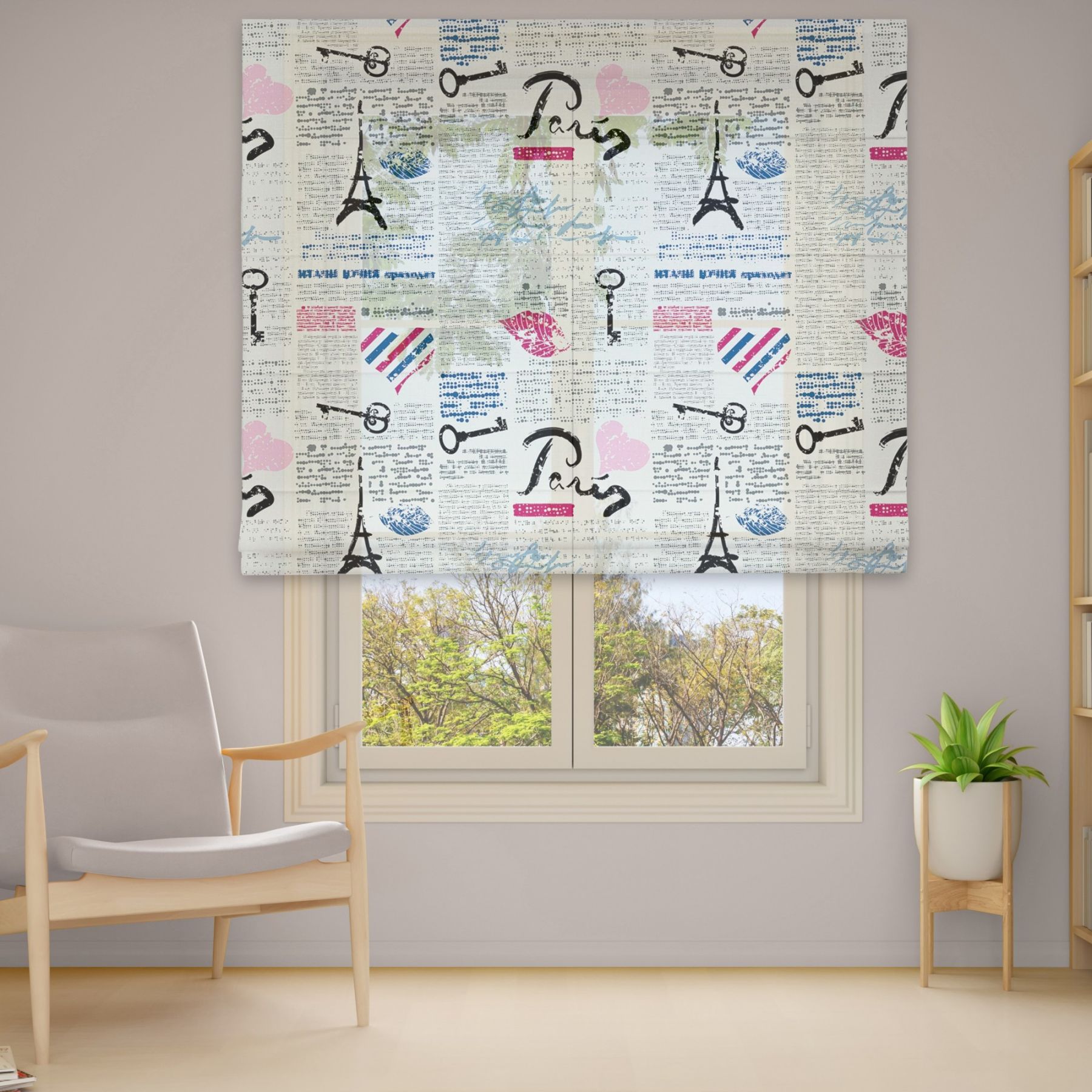 Римські штори з фотодруком на тюлі з ланцюговим карнизом DimShtor - це сучасні, функціональні та практичні штори.