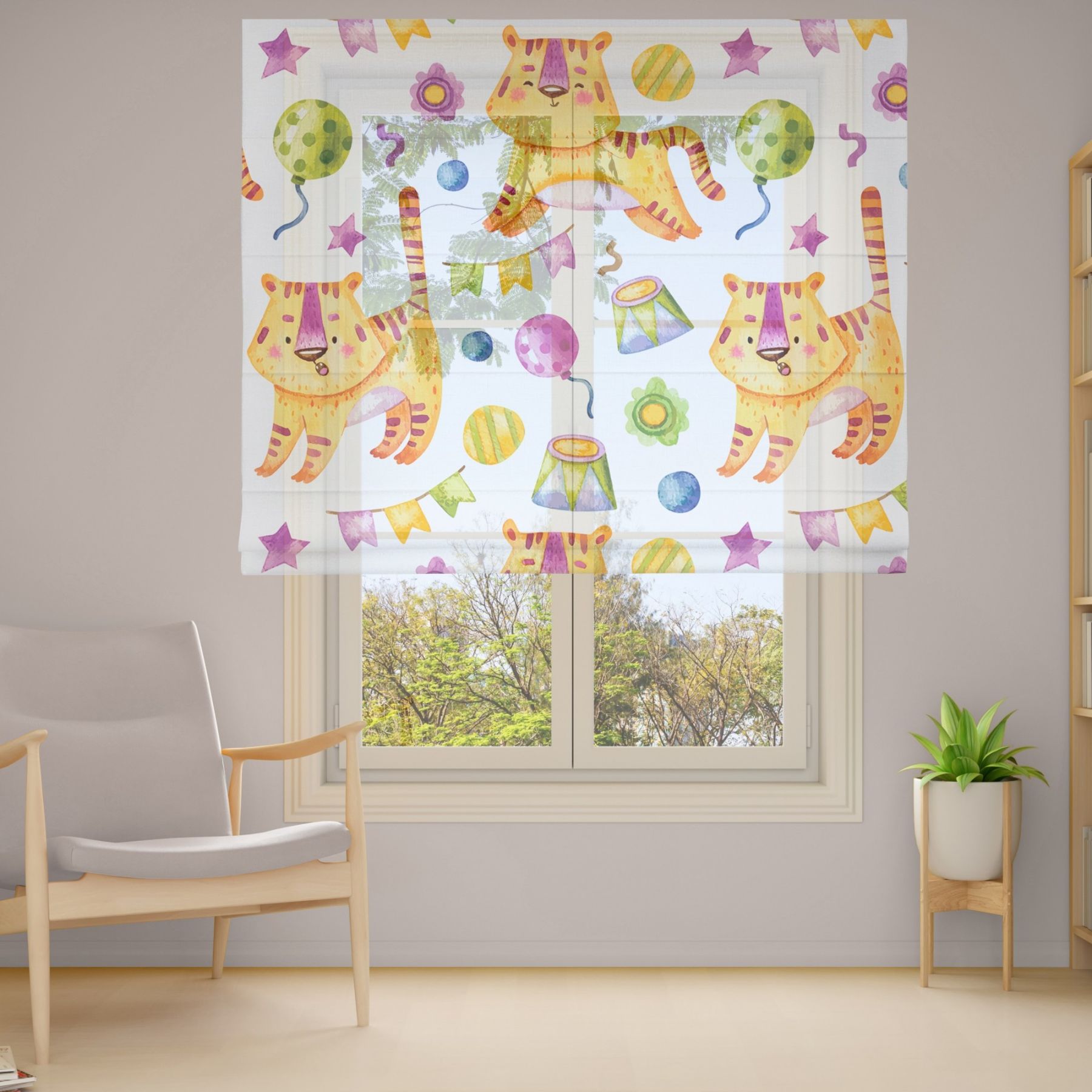 Римські штори з фотодруком на тюлі з ланцюговим карнизом DimShtor - це сучасні, функціональні та практичні штори.