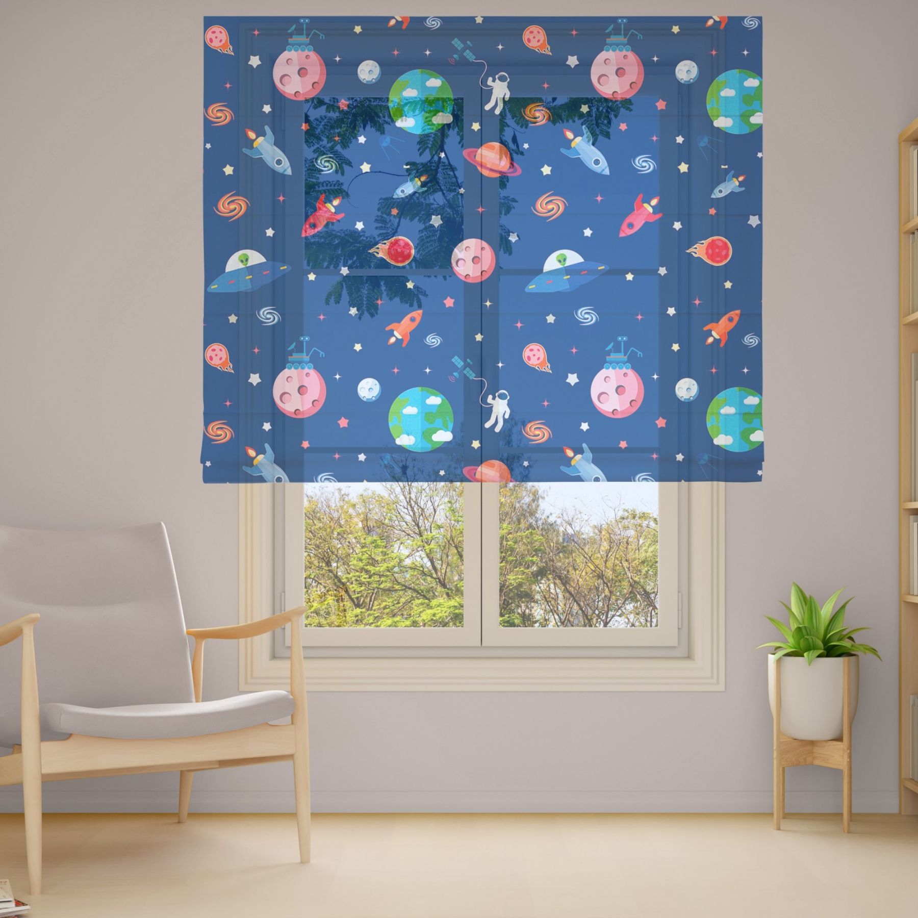 Римські штори з фотодруком на тюлі з ланцюговим карнизом DimShtor - це сучасні, функціональні та практичні штори.