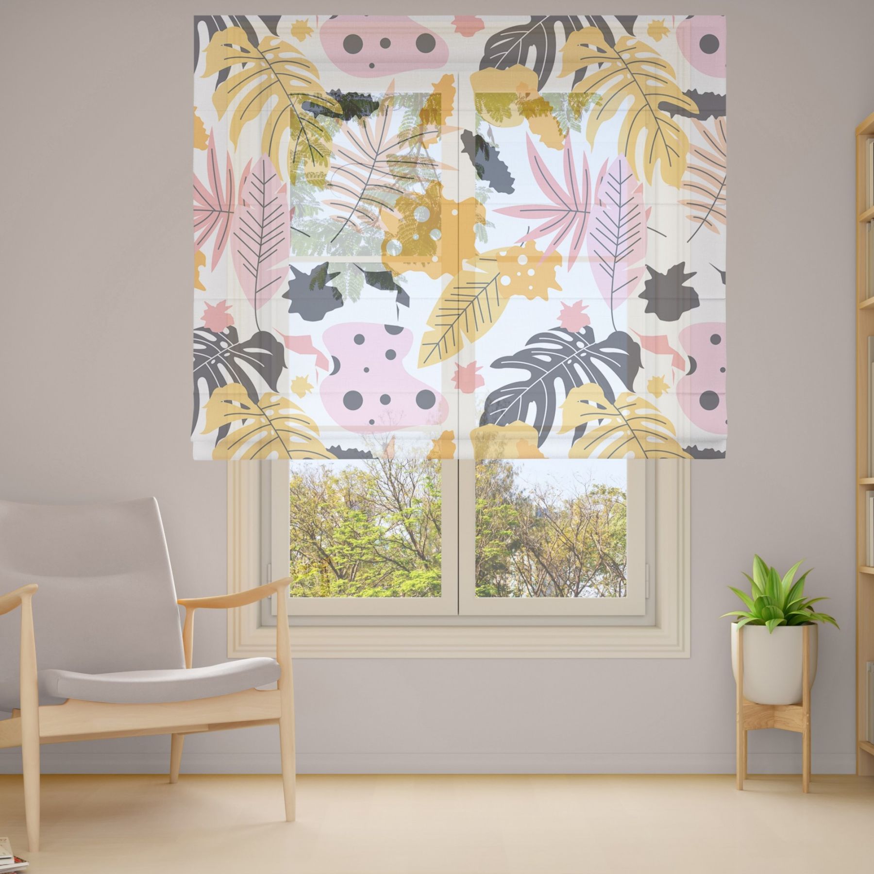 Римські штори з фотодруком на тюлі з ланцюговим карнизом DimShtor - це сучасні, функціональні та практичні штори.