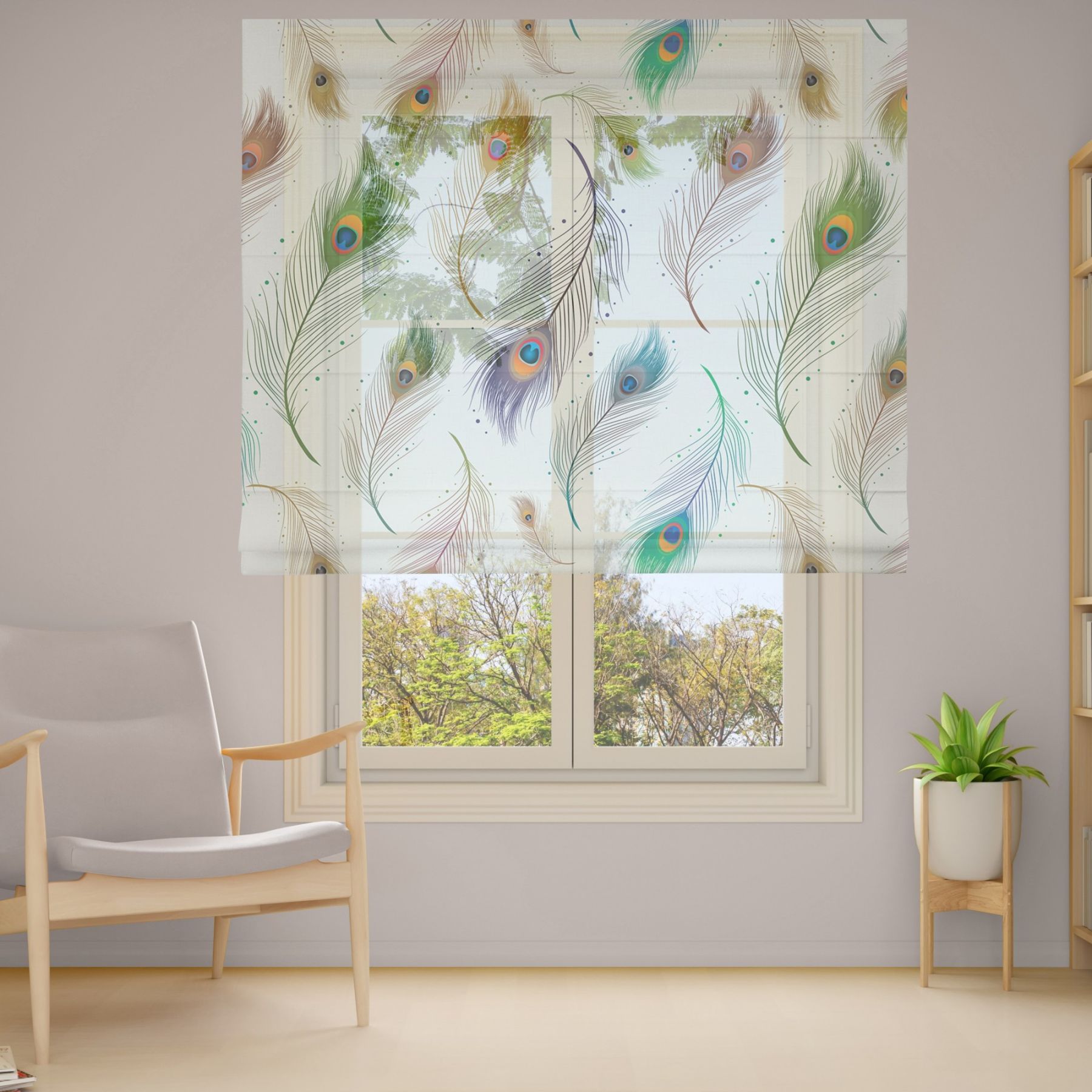 Римські штори з фотодруком на тюлі з ланцюговим карнизом DimShtor - це сучасні, функціональні та практичні штори.