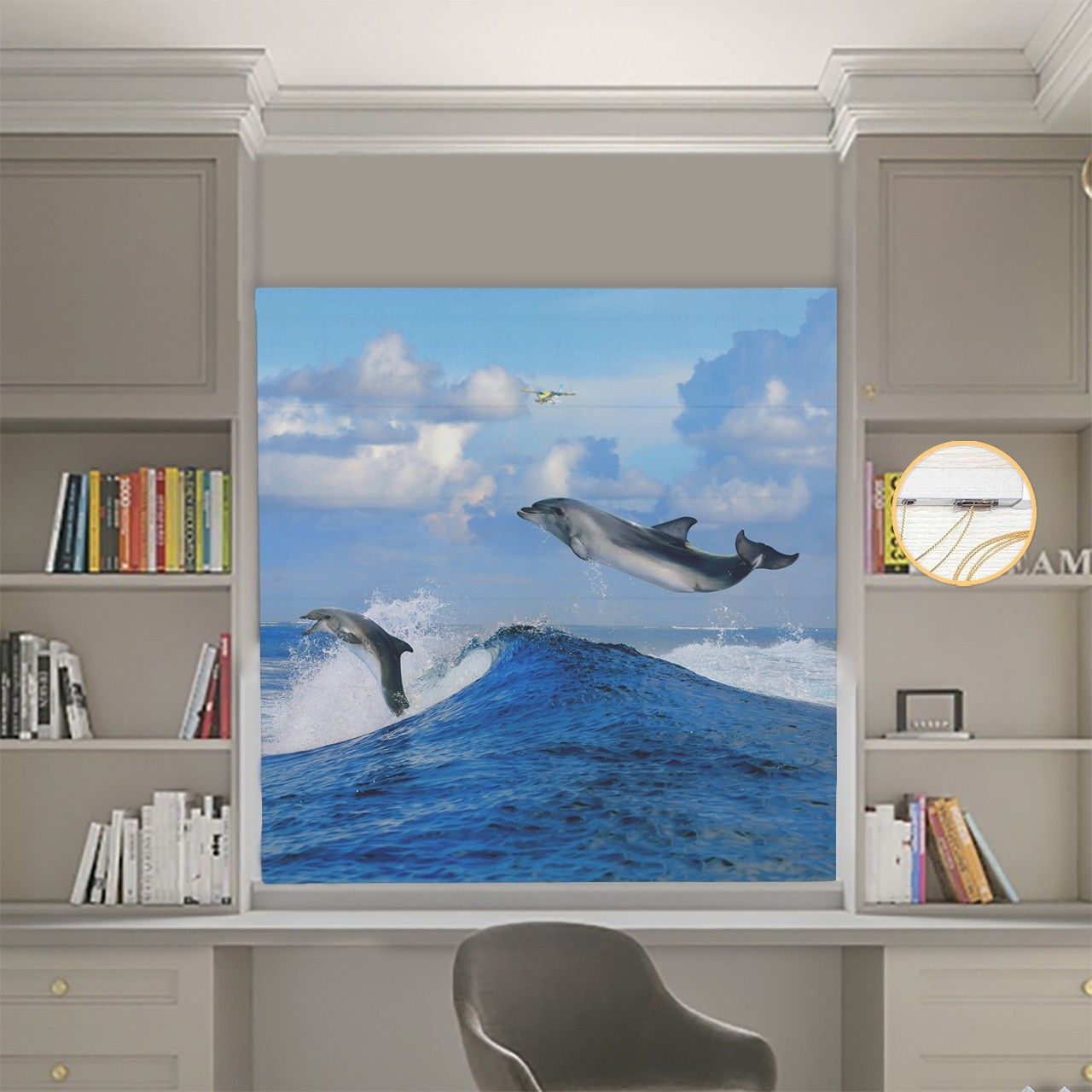Римська штора з ланцюжковим карнизом Фотодрук Дельфіни Блекаут