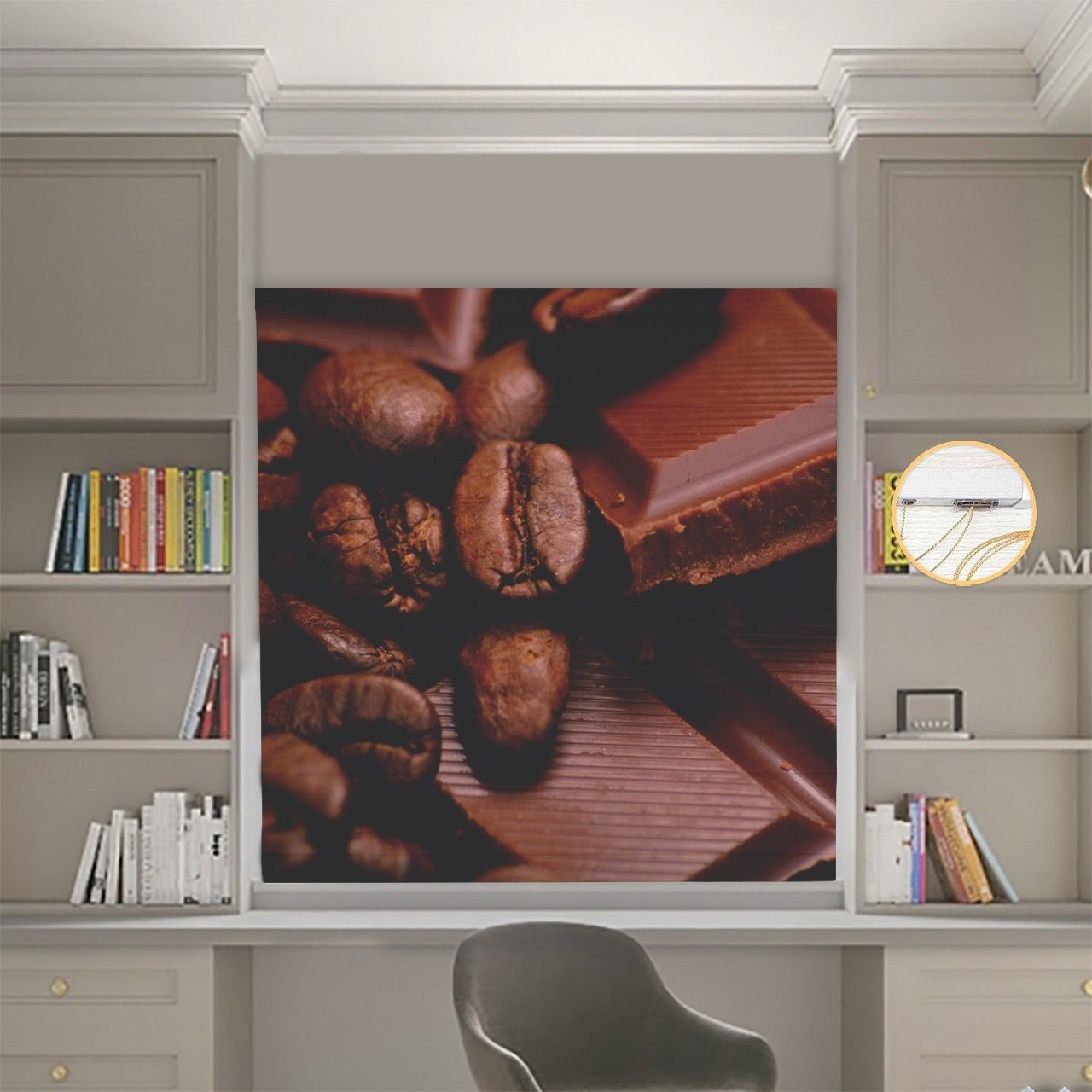 Римська штора з ланцюжковим карнизом Фотодрук Кавові зерна Блекаут